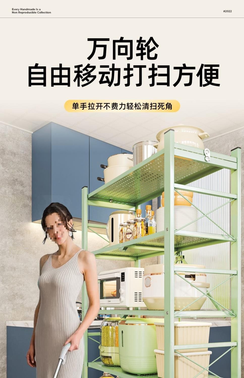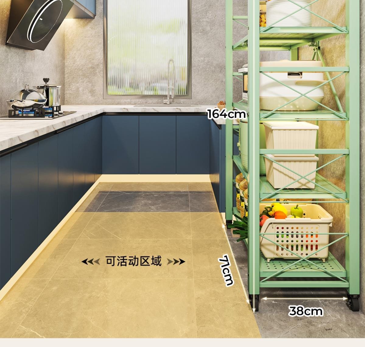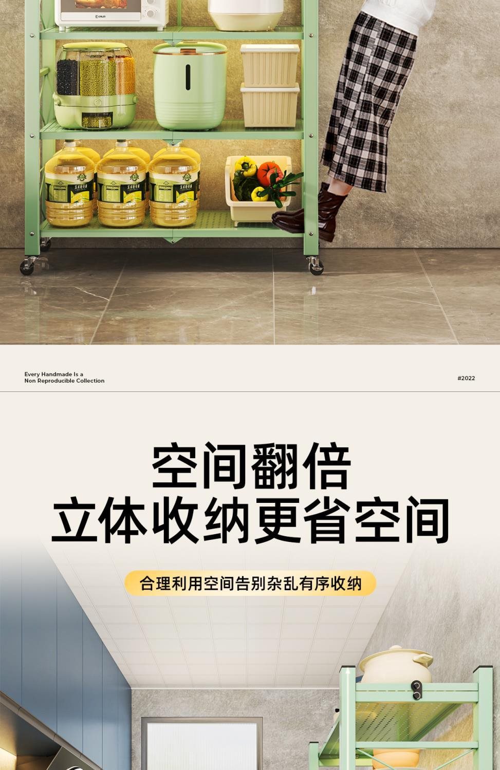 주방 접이식 선반 바닥에서 천장까지 다층 선반 설치가 필요 없는 보관 캐비닛 선반 전자 레인지 선반
