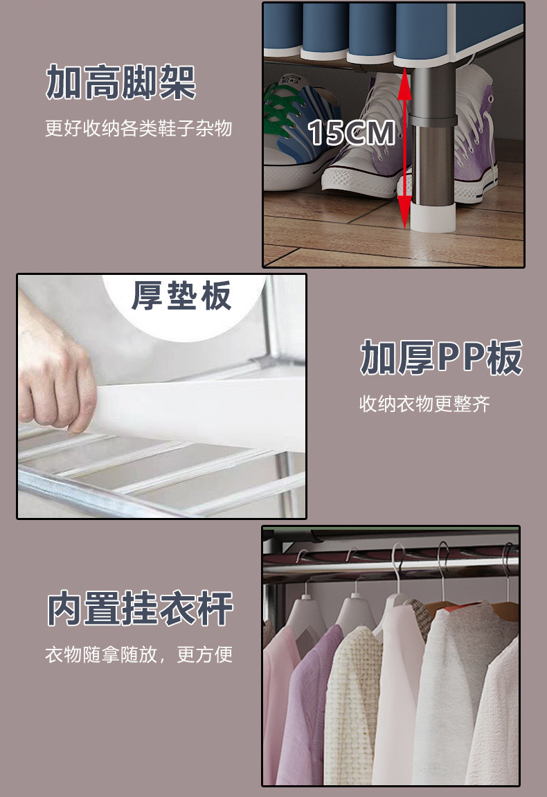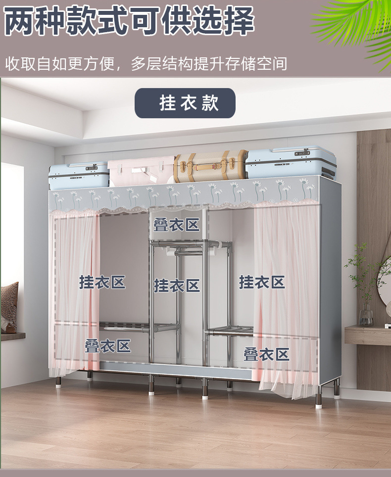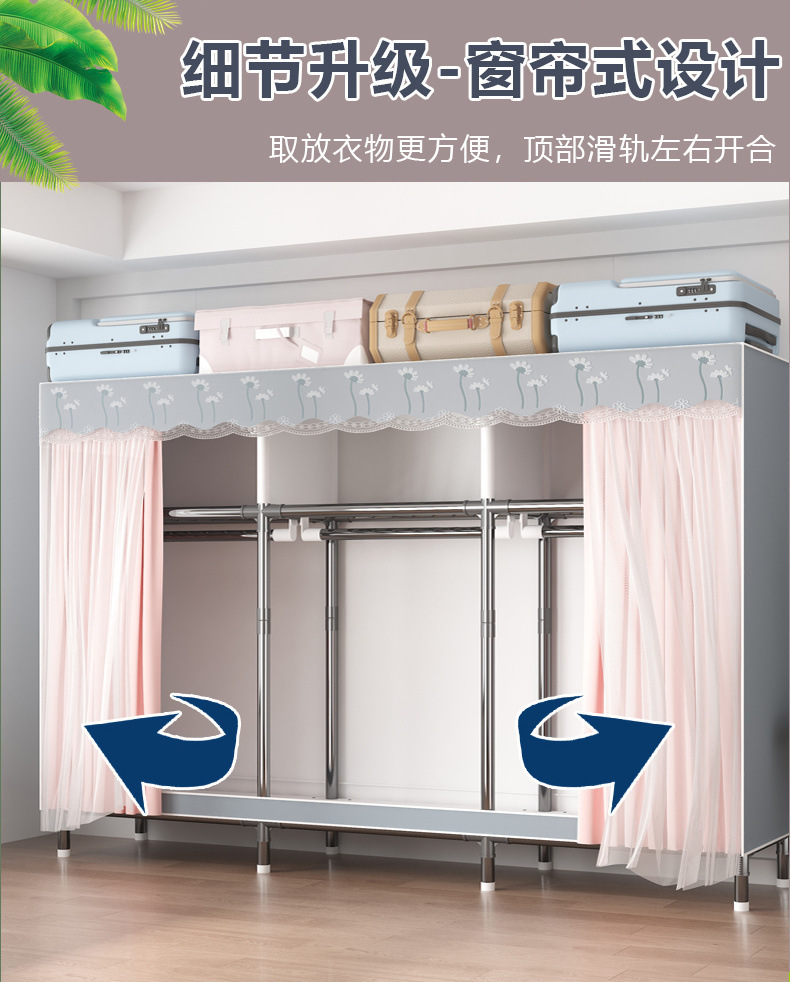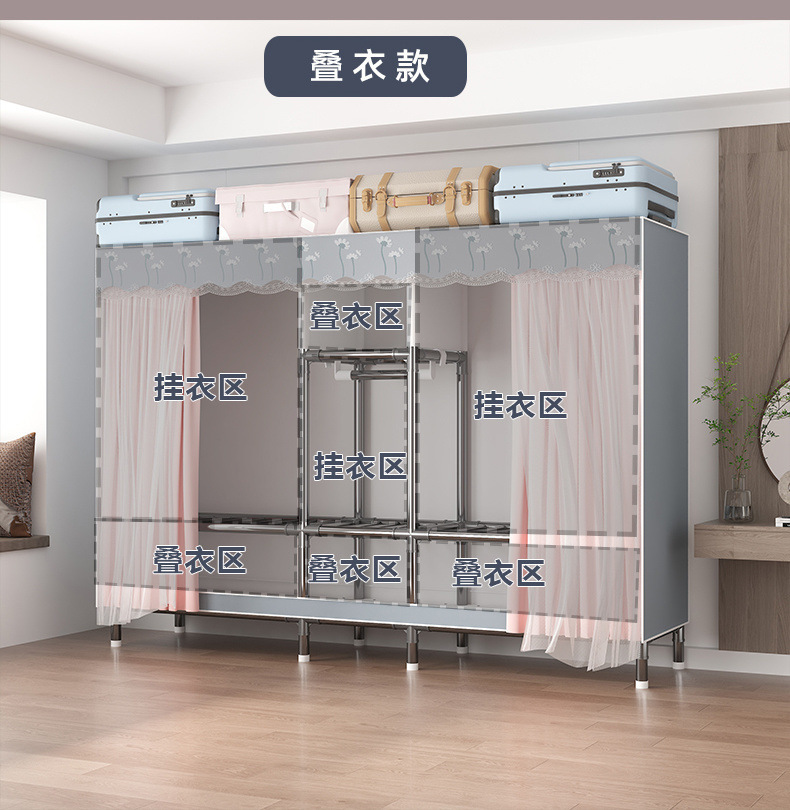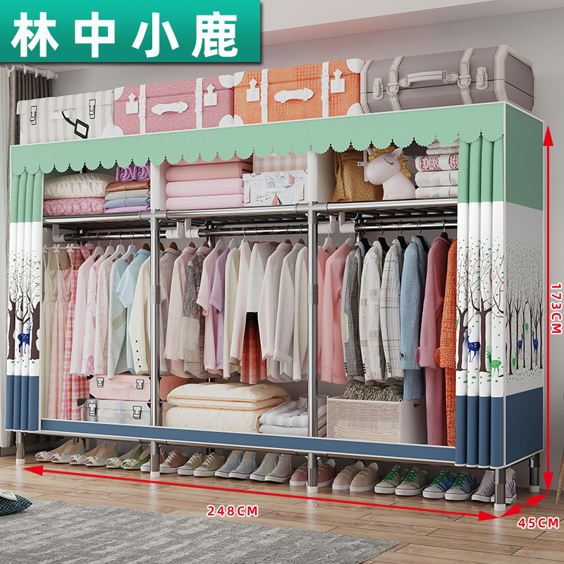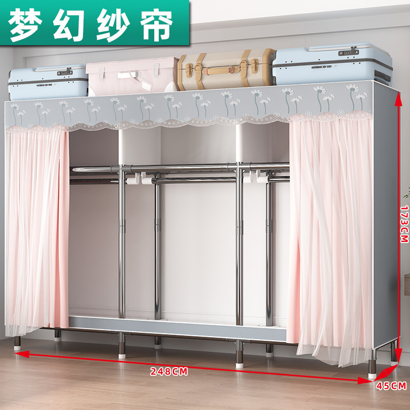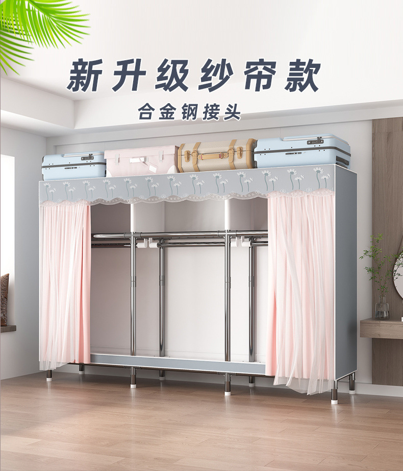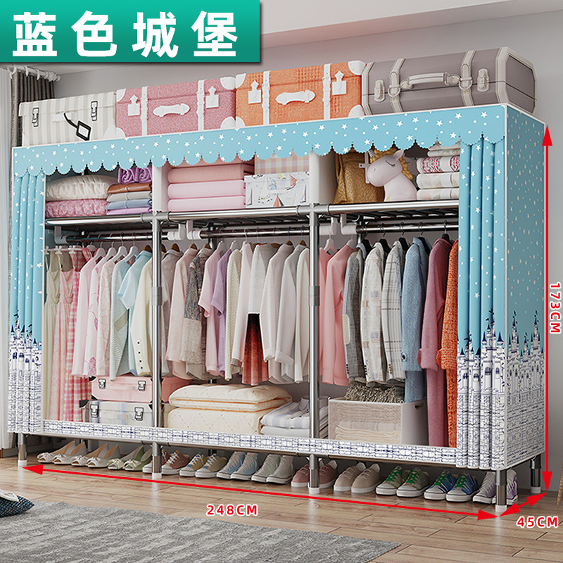 가정용 전체 강철 프레임 천 옷장 두꺼운 강화 두꺼운 침실 임대실 대용량 조립식 보관 랙 캐비닛