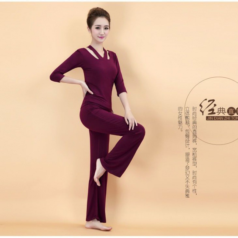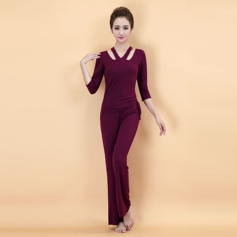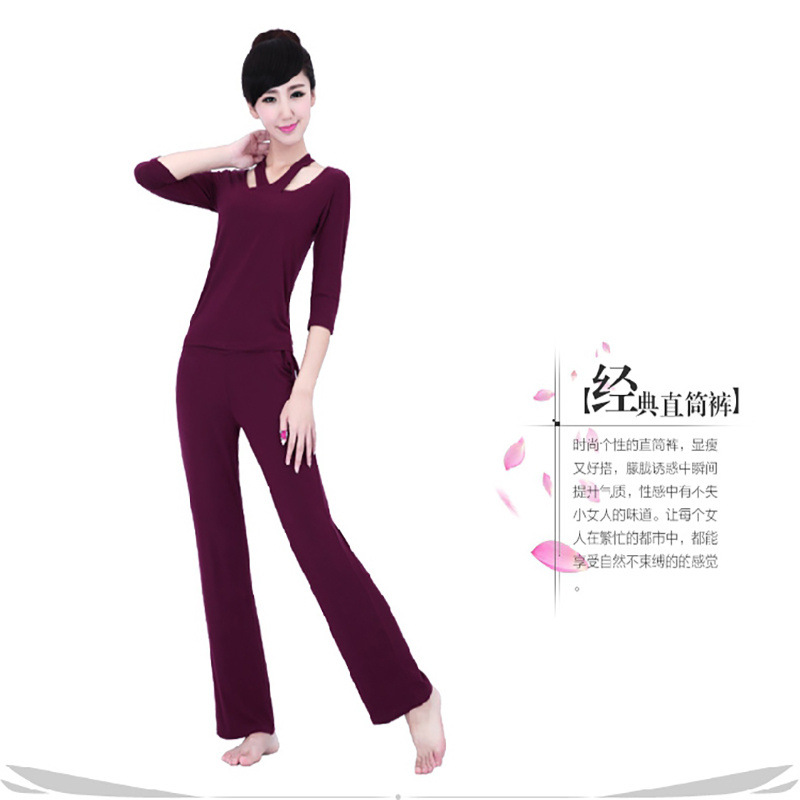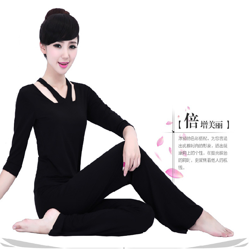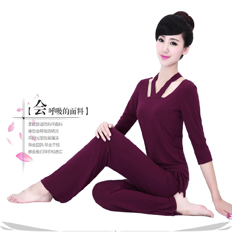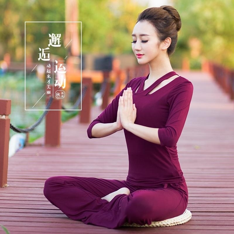 Xsz 2024 새로운 가을, 겨울 요가 의류 세트 여성 모달 코튼 가슴 패드 인터넷 연예인 피트니스 의류 운동복
