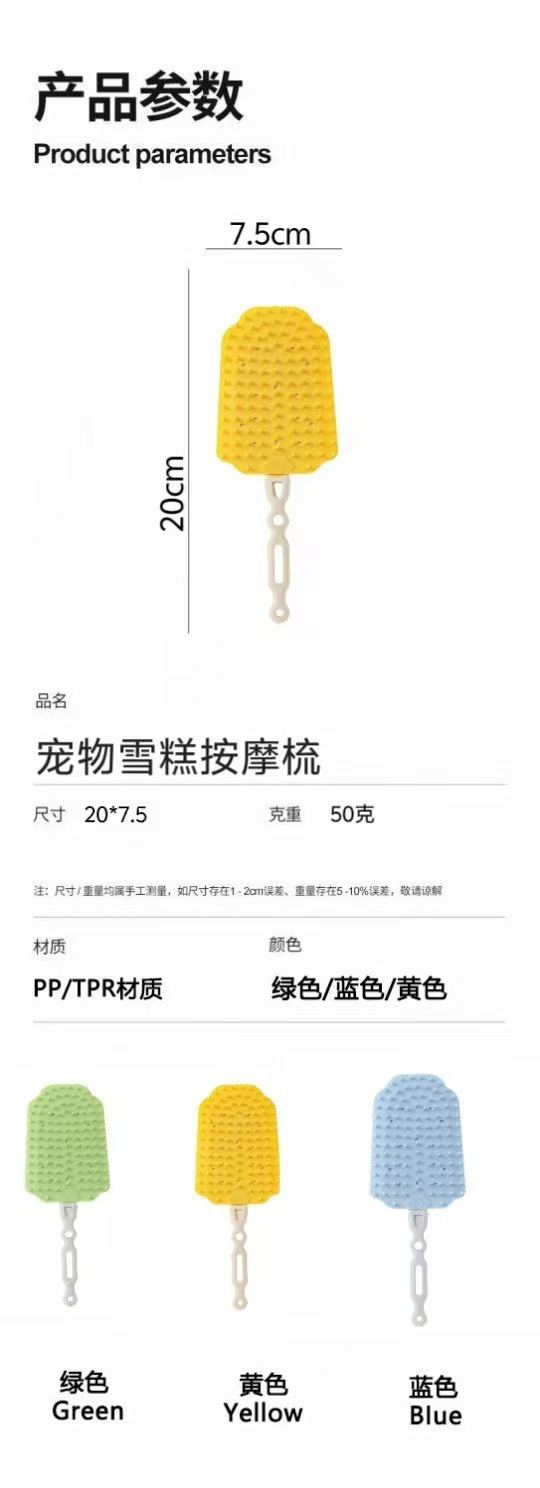 애완동물 아이스크림 마사지 빗, 개와 고양이 플로팅 헤어 빗, 애완동물 브러시 및 면도기, 양면 걸이형 애완동물 빗스토어 가기