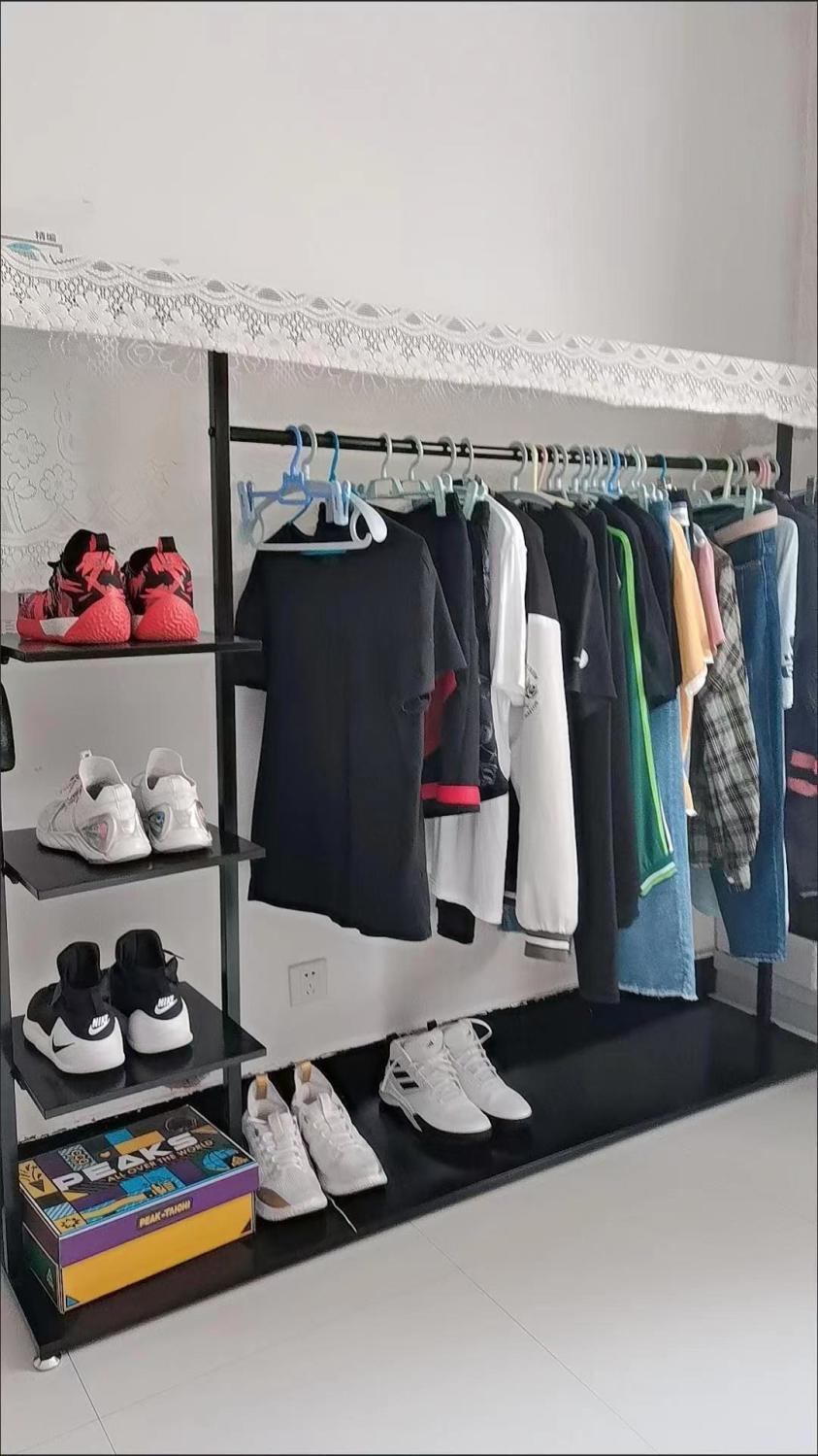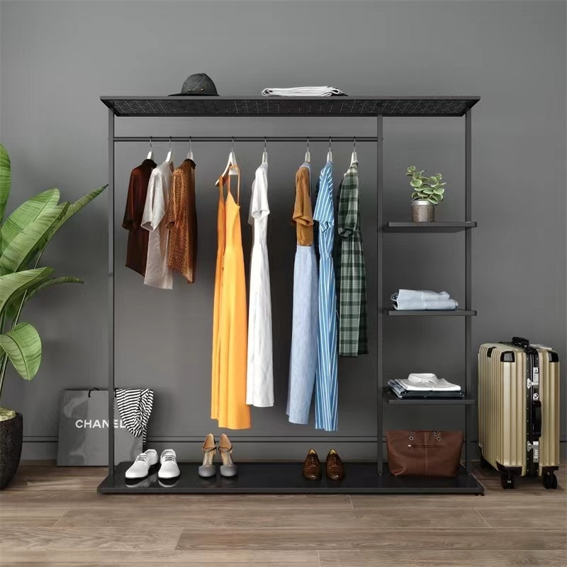 가정용 간단한 옷장 철 전시 랙 바닥 스탠딩 인터넷 연예인 코트 랙 다기능 의류 보관 랙 침실 코트 랙