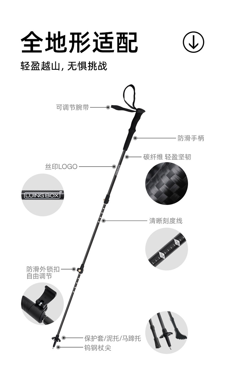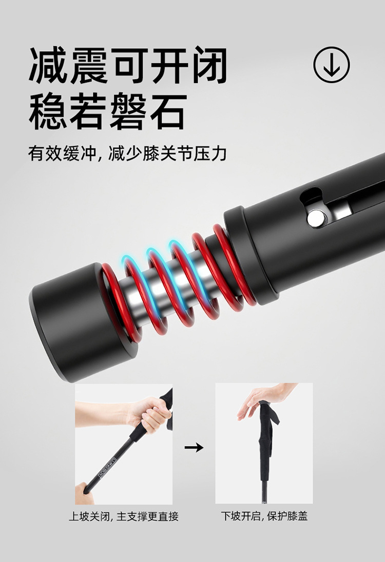 탄소 섬유 트레킹 폴 충격 흡수 디자인 하이킹 유물 야외 하이킹스토어 가기