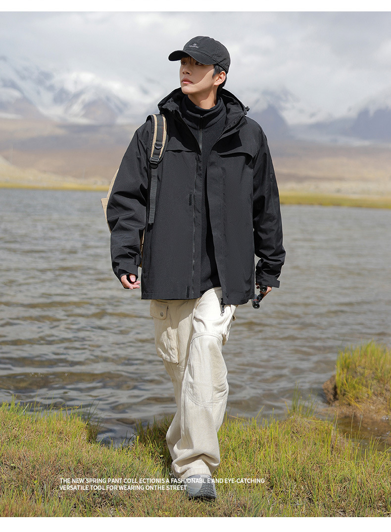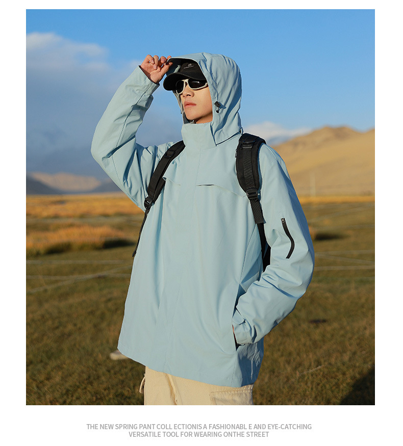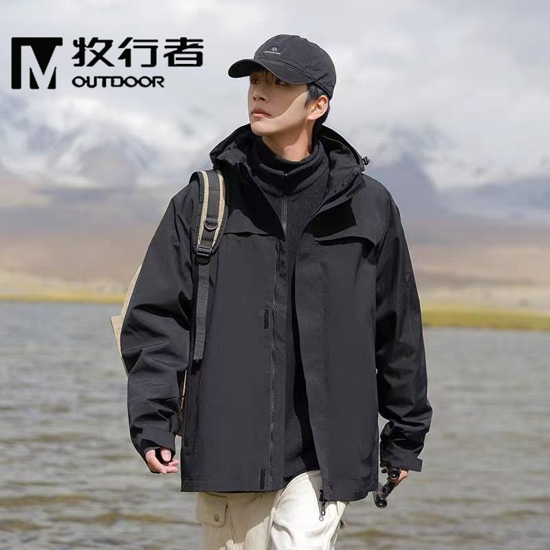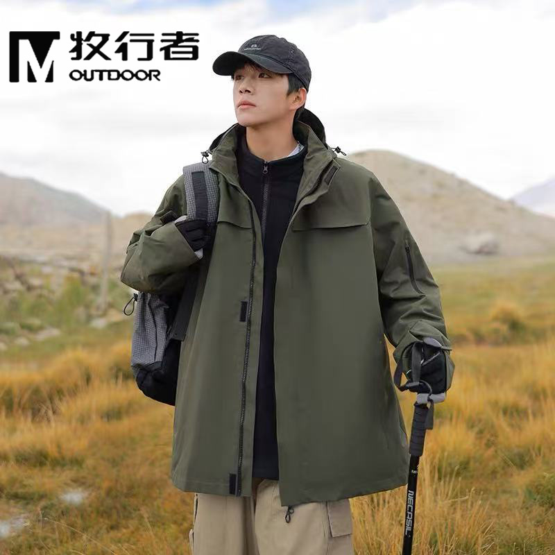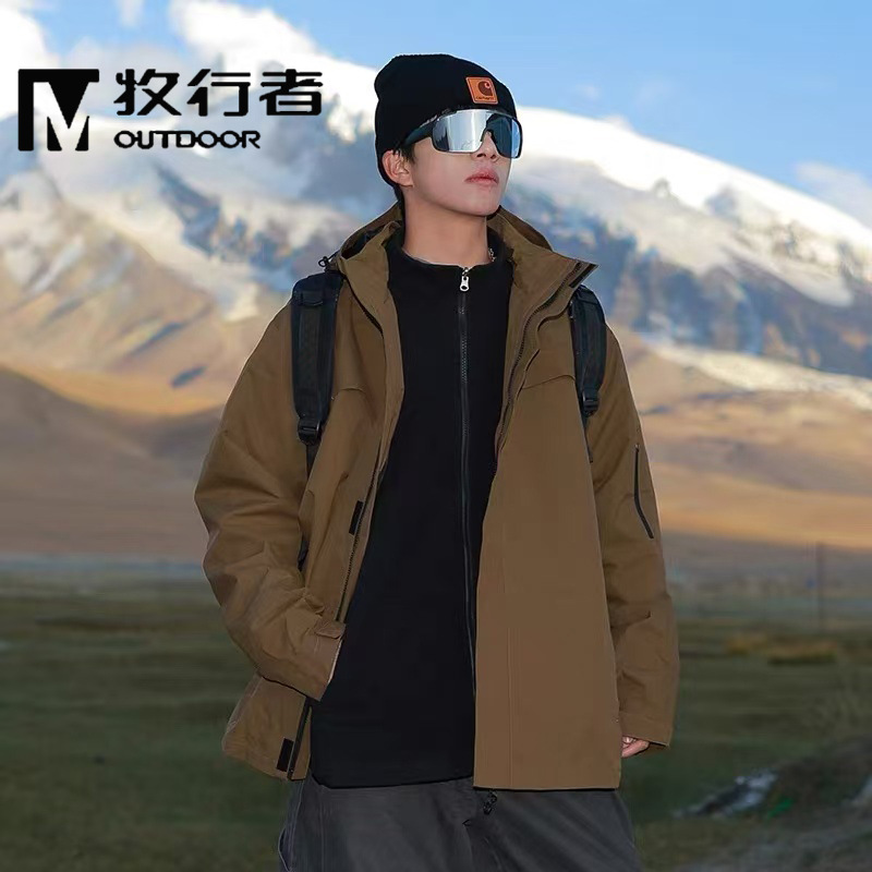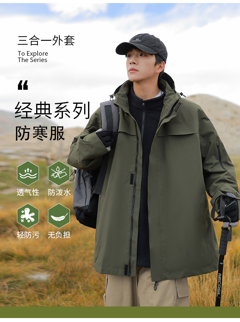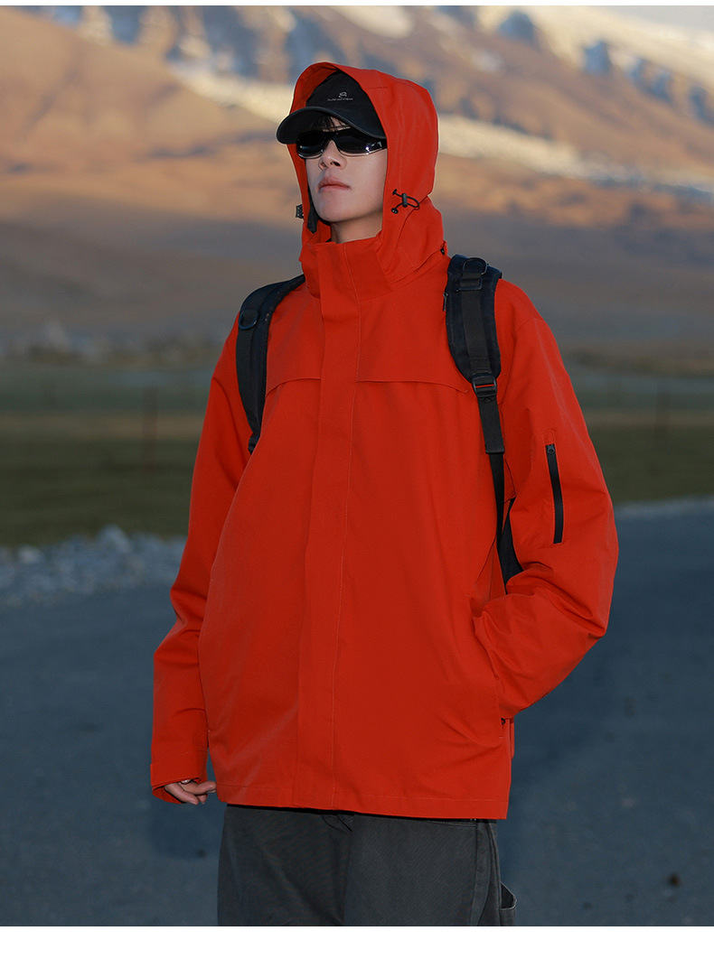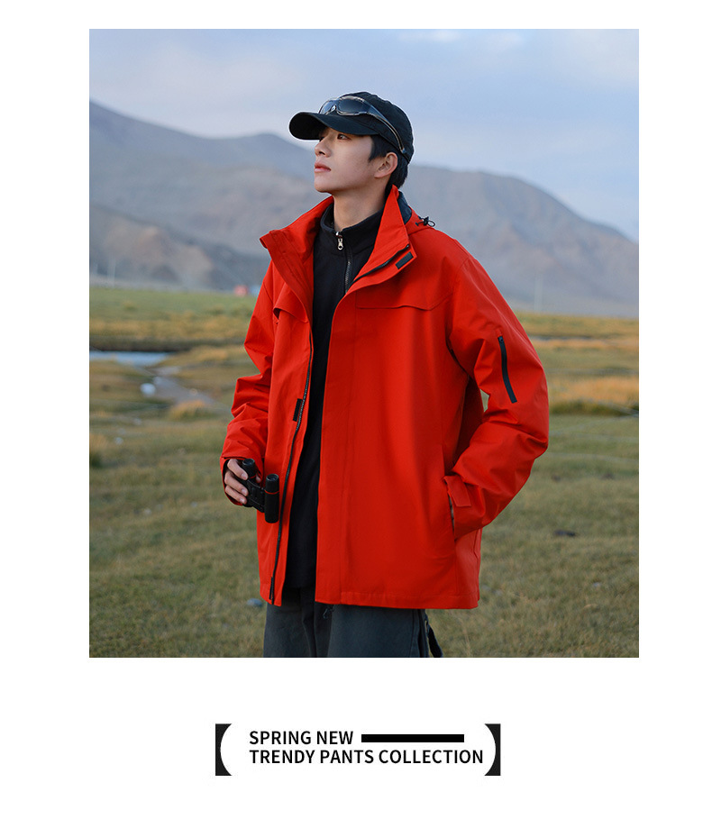 중국 레드 소프트 쉘 재킷 남성 가을, 겨울 유행 야외 등산 의류 여성 3-in-one 재킷 방풍 및 방수 재킷스토어 가기