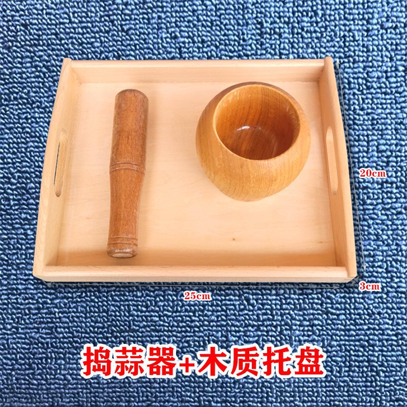 • 샴페인 컬러 마늘 파운더 + 나무 트레이
