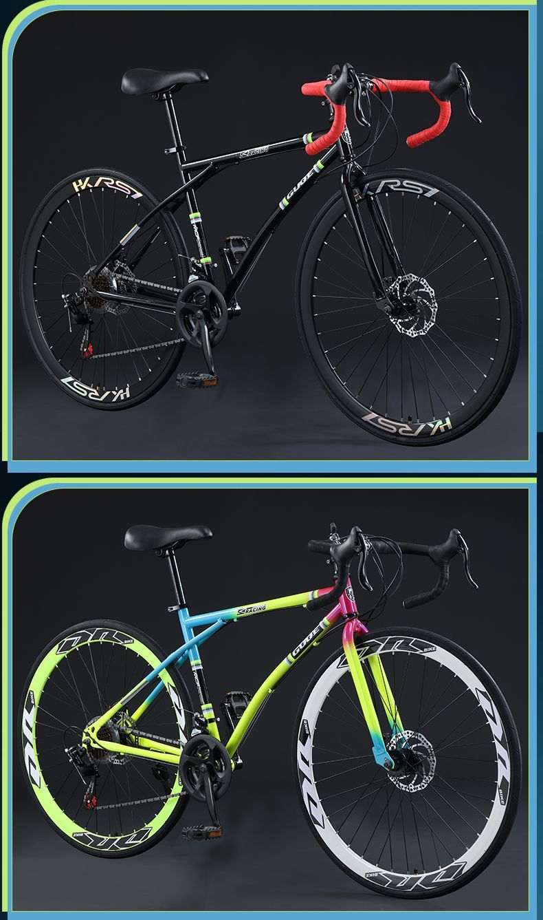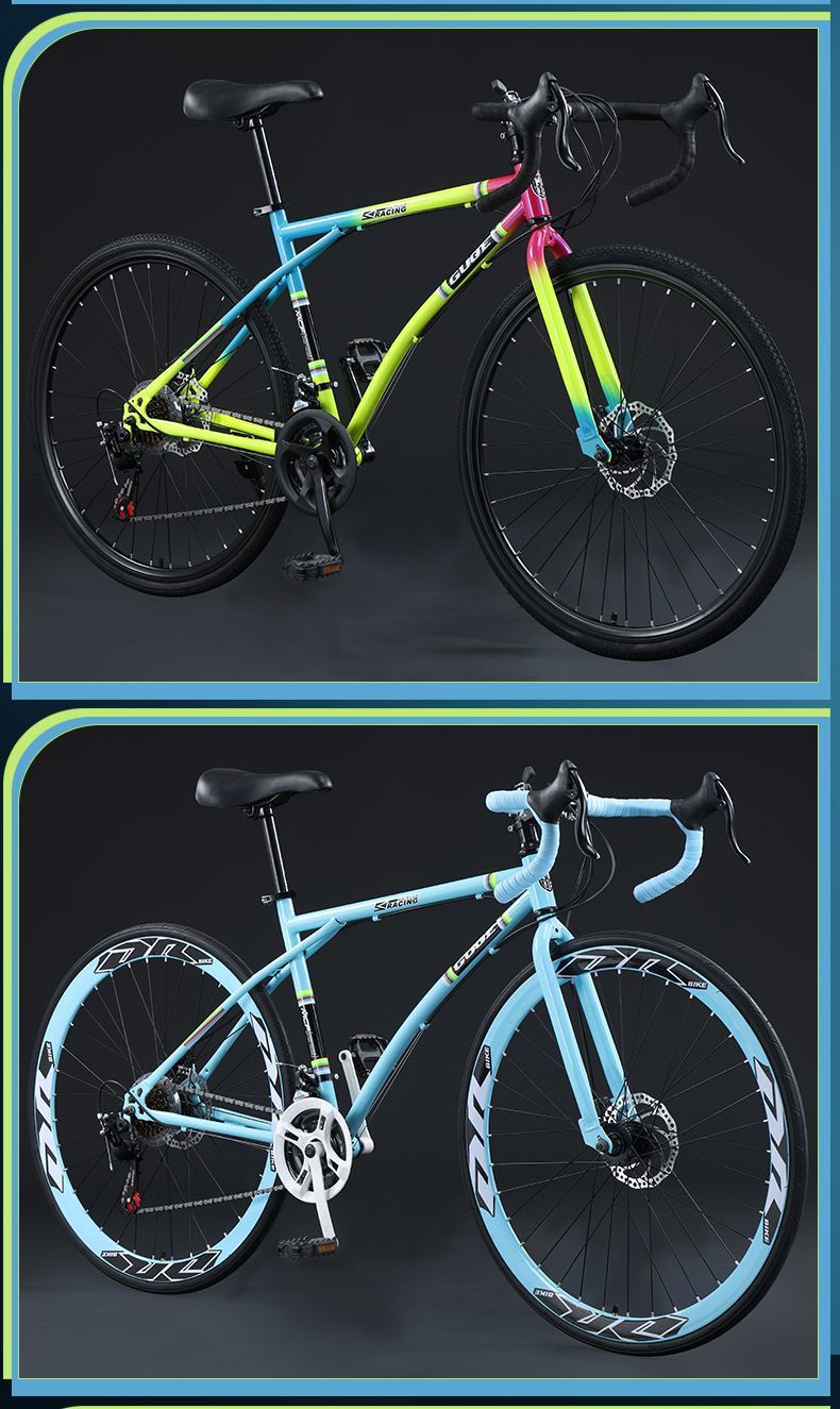 0raGUQE 가변 속도 자전거 도로 경주 학교 교통 곡선 핸들 근육 활성 비행 자전거 학생을위한 듀얼 디스크 브레이크