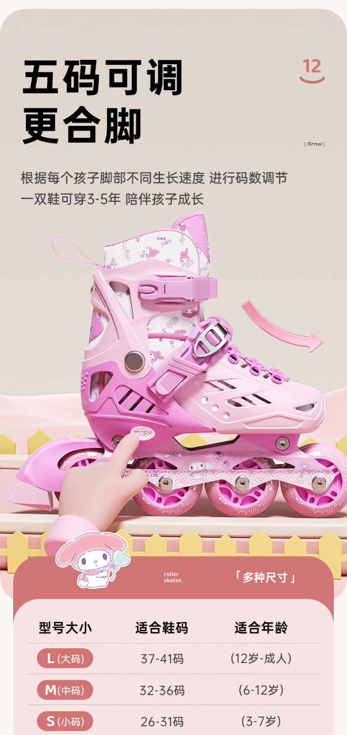 aF2 멜로디 스케이트 소녀 롤러 스케이트 소년 롤러 스케이트 6-12 세 풀 세트 어린이 롤러 스케이트 초급