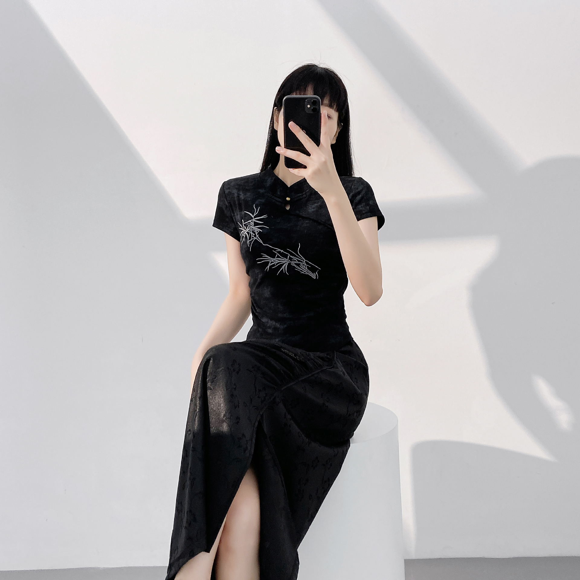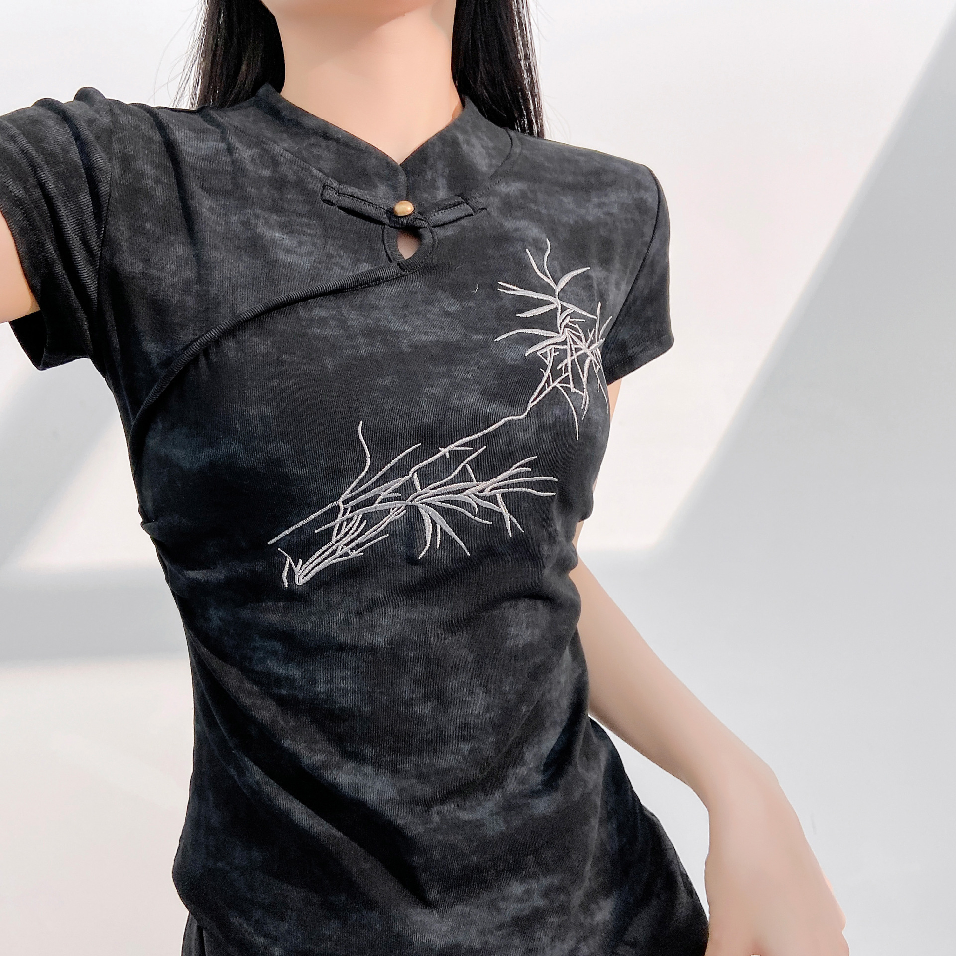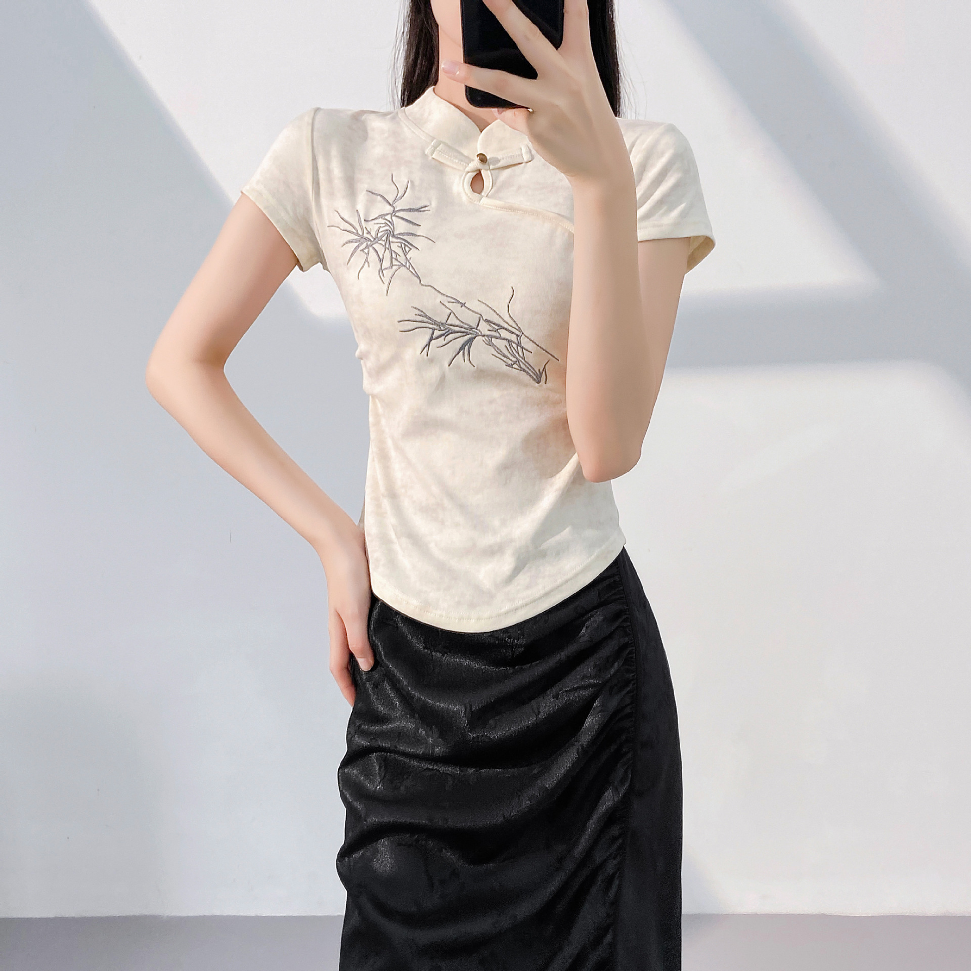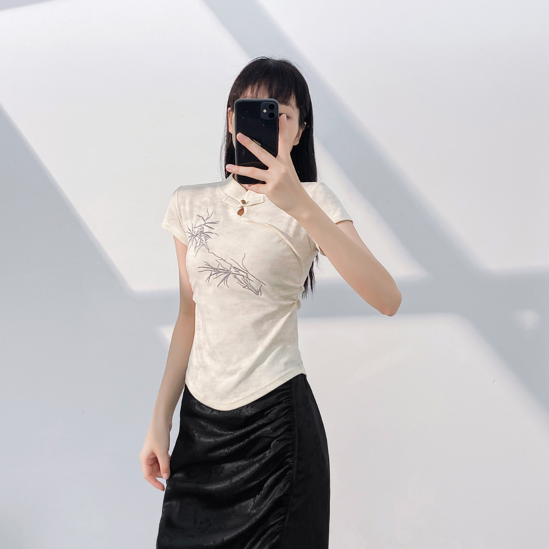 2025 여름 새로운 중국 스타일 정장 여성 허리 슬리밍 짧은 소매 새틴 자카드 하이 엔드 스커트스토어 가기