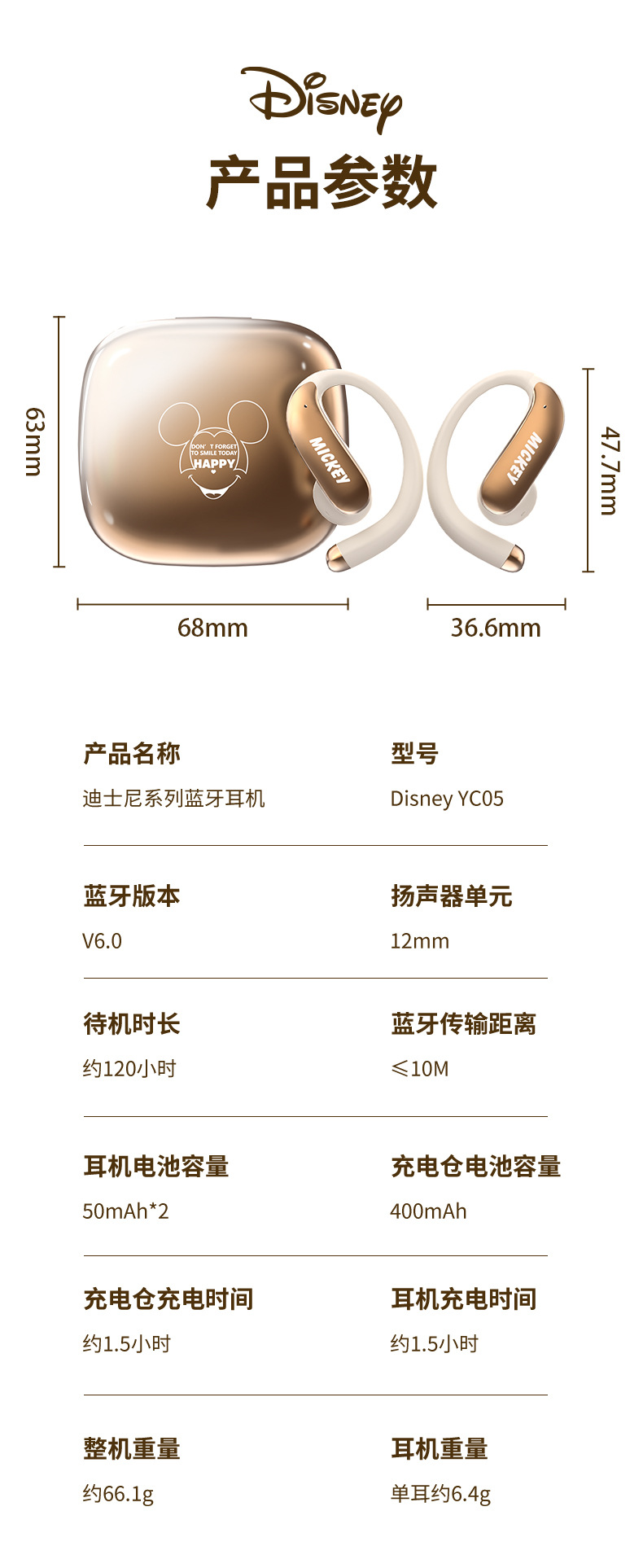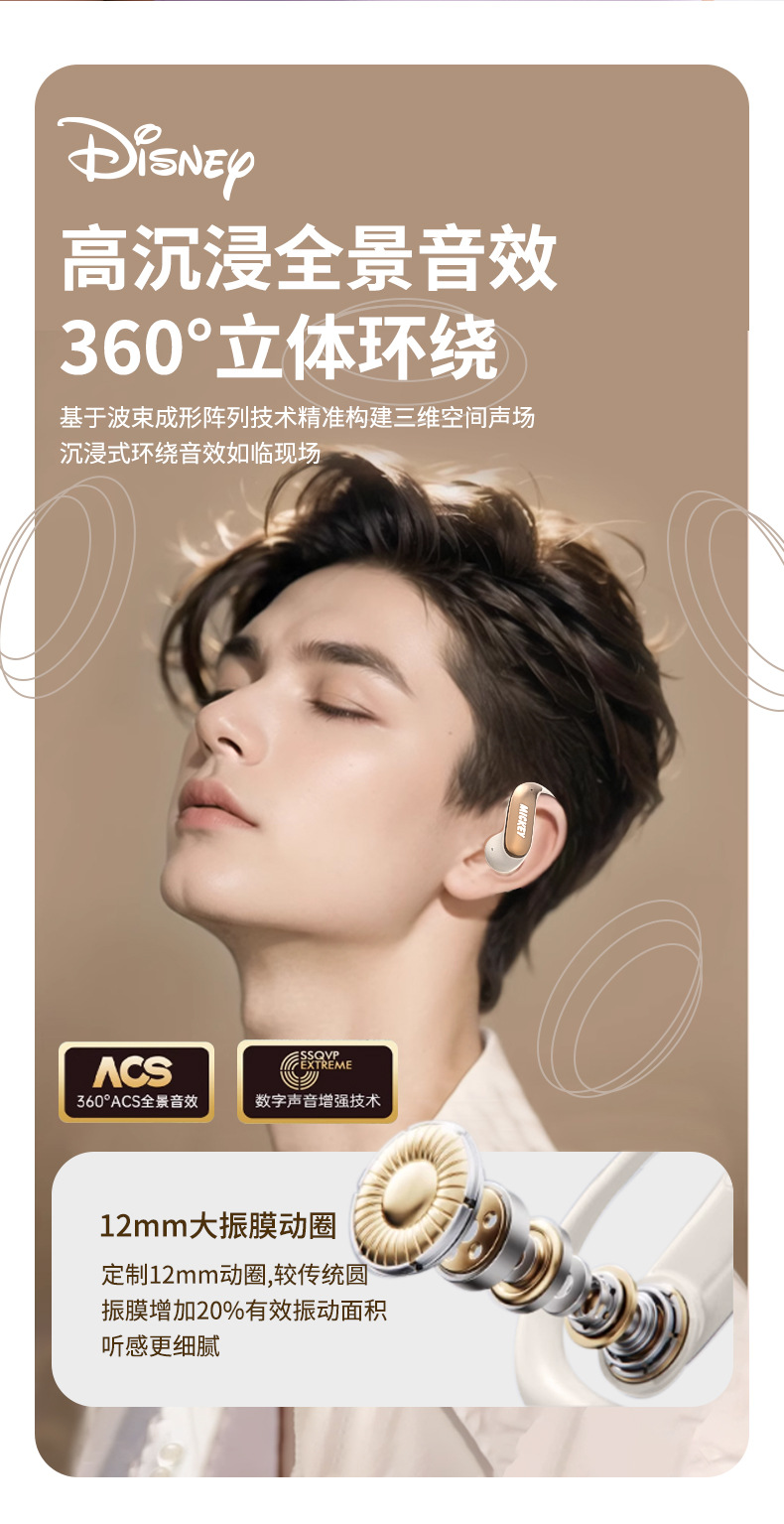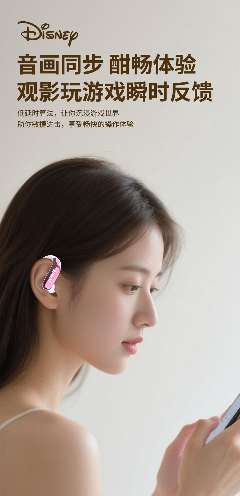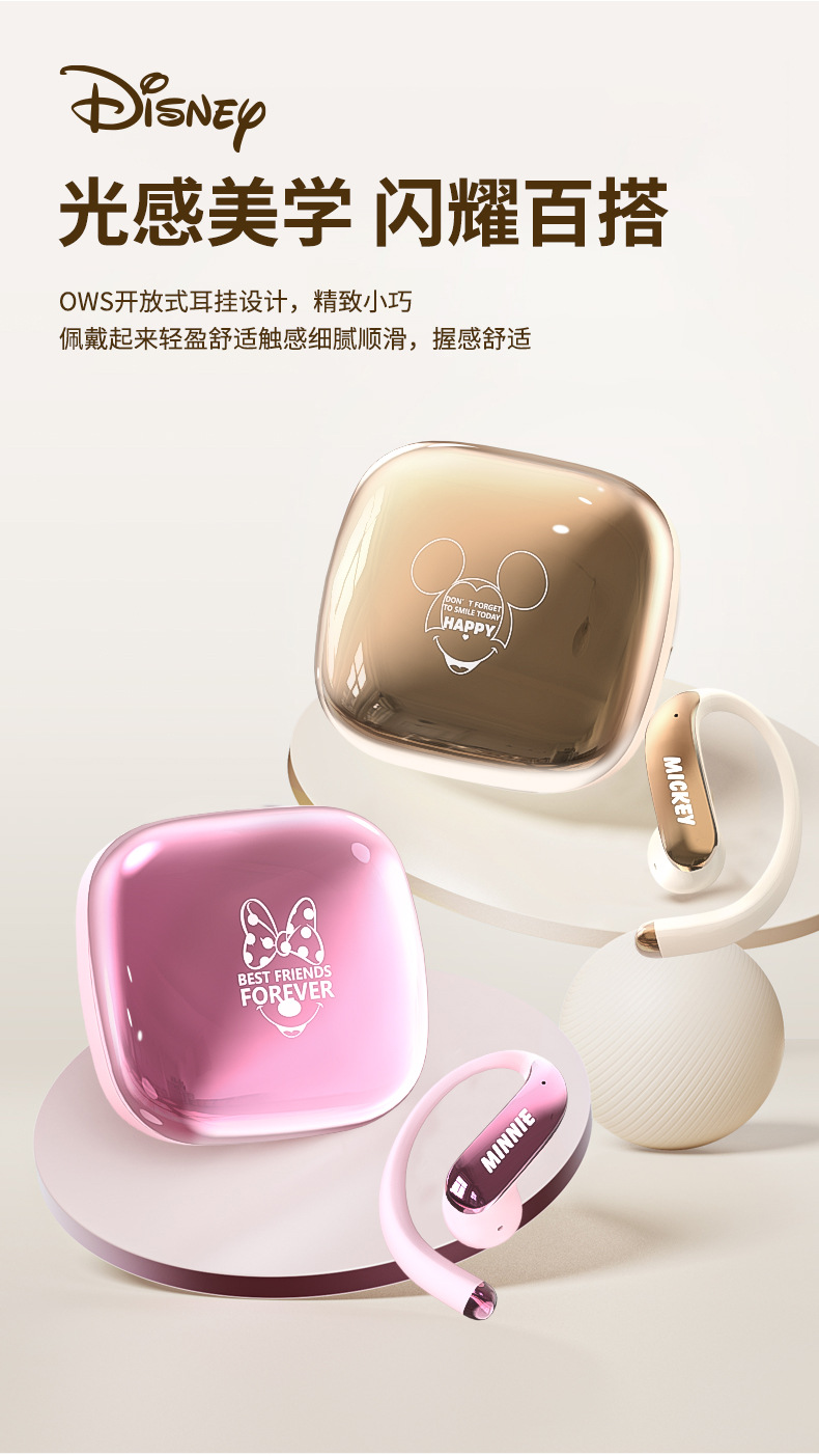 디즈니 파우더 블루투스 헤드셋 2025 새로운 무선 세미 인 이어 소녀 모델 장기간 착용 가능 통증 없음 휴대 전화 유니버설스토어 가기