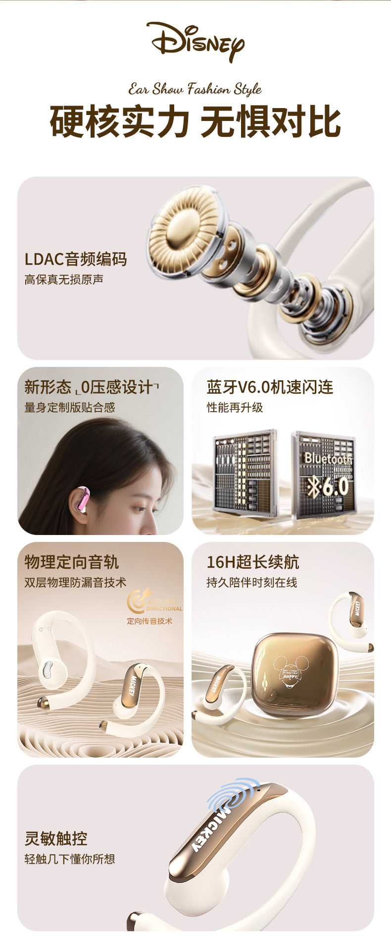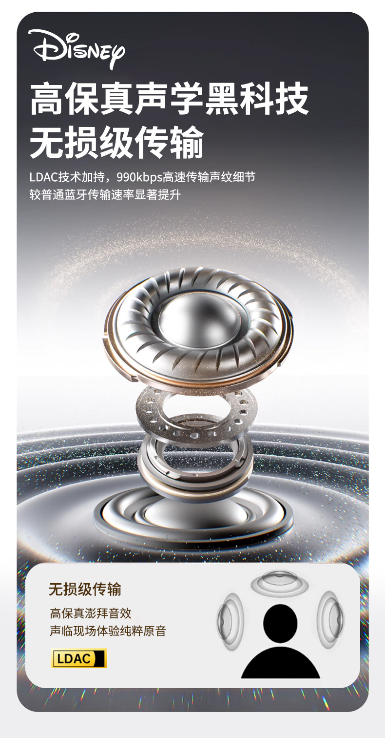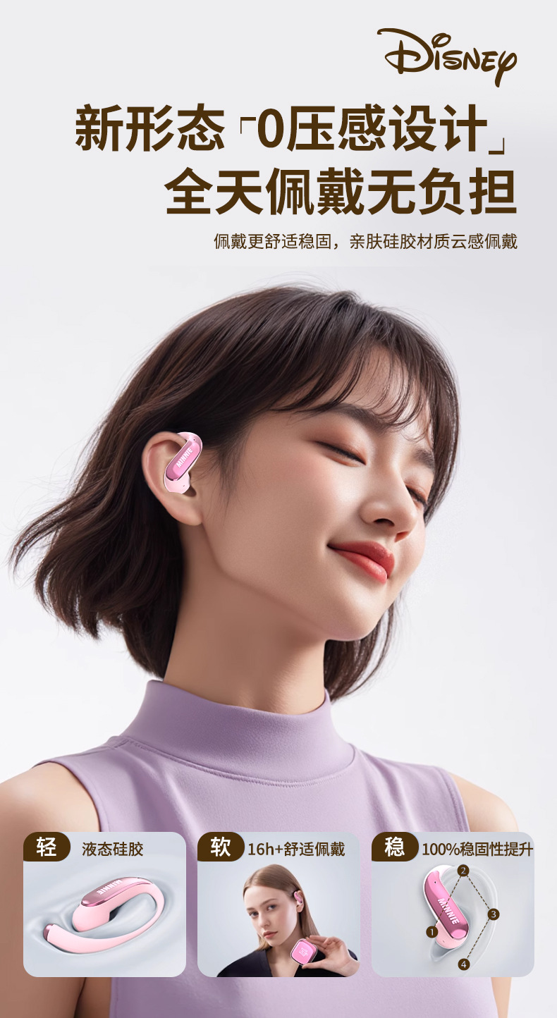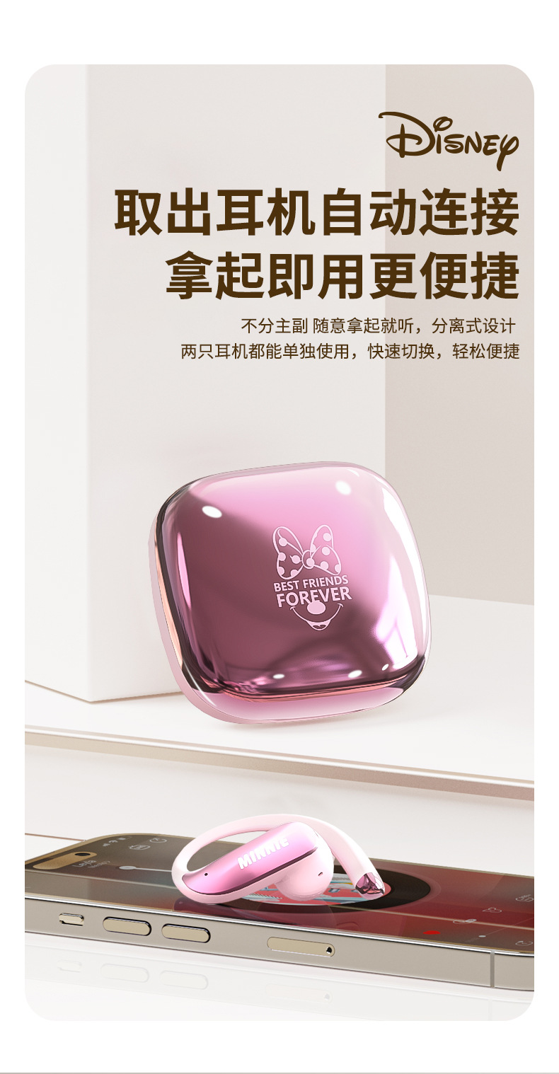 디즈니 파우더 블루투스 헤드셋 2025 새로운 무선 세미 인 이어 소녀 모델 장기간 착용 가능 통증 없음 휴대 전화 유니버설