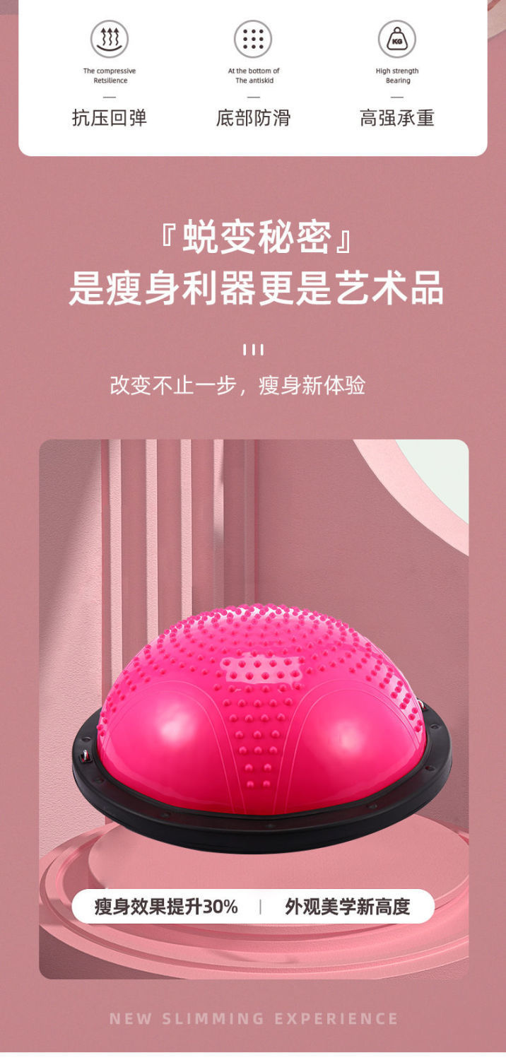Xsz 웨이브 속도 볼 반원형 균형 공 두꺼운 방폭형 홈 슬리밍 요가 필라테스 훈련 피트니스 마사지 요가