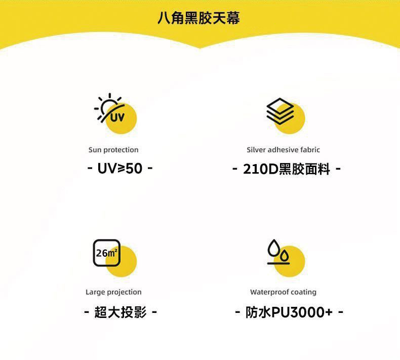 야외 비닐 캐노피 휴대용 캠핑 태양 보호 캐노피 텐트 팔각형 캠핑 피크닉 천막