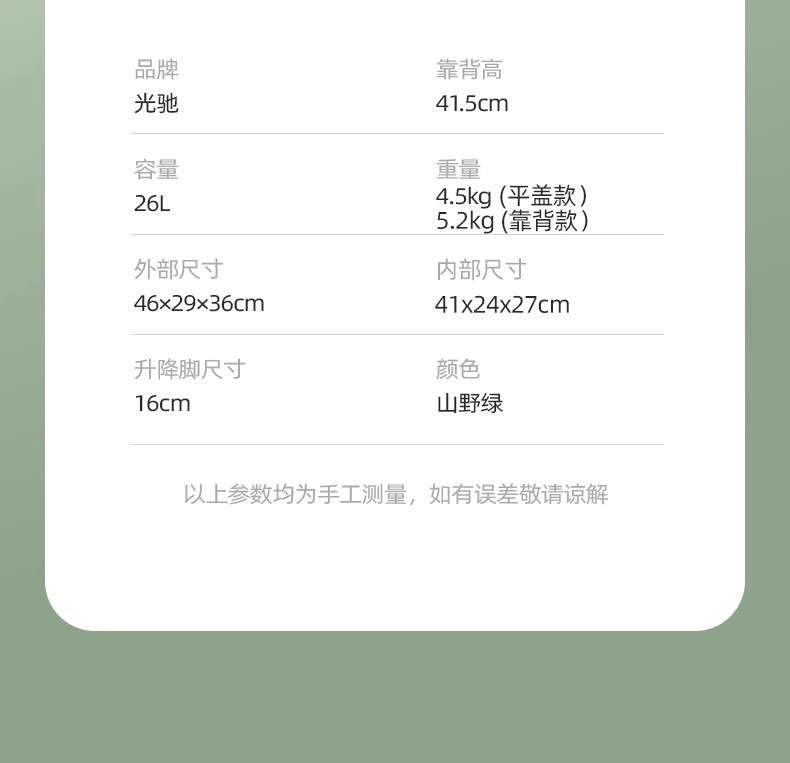 • [오프로드 휠] 플랫 커버 모델/마운틴 그린-26L-부속품 없음-리프팅/보관함/어깨끈 포함