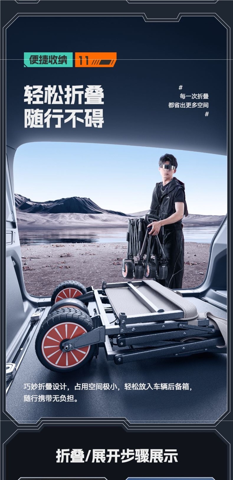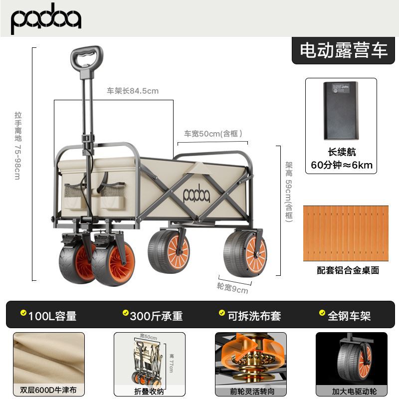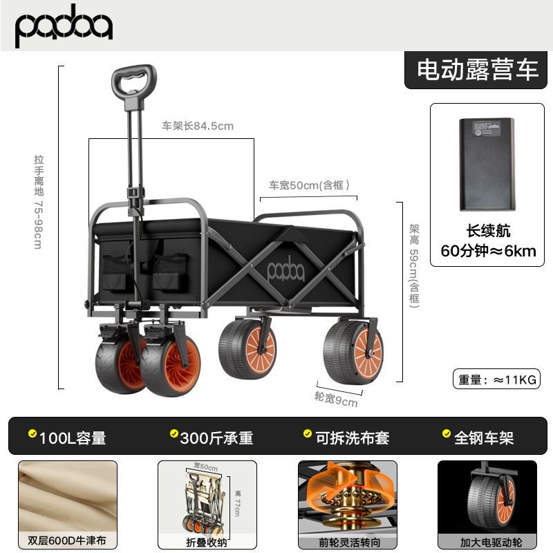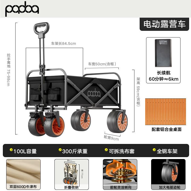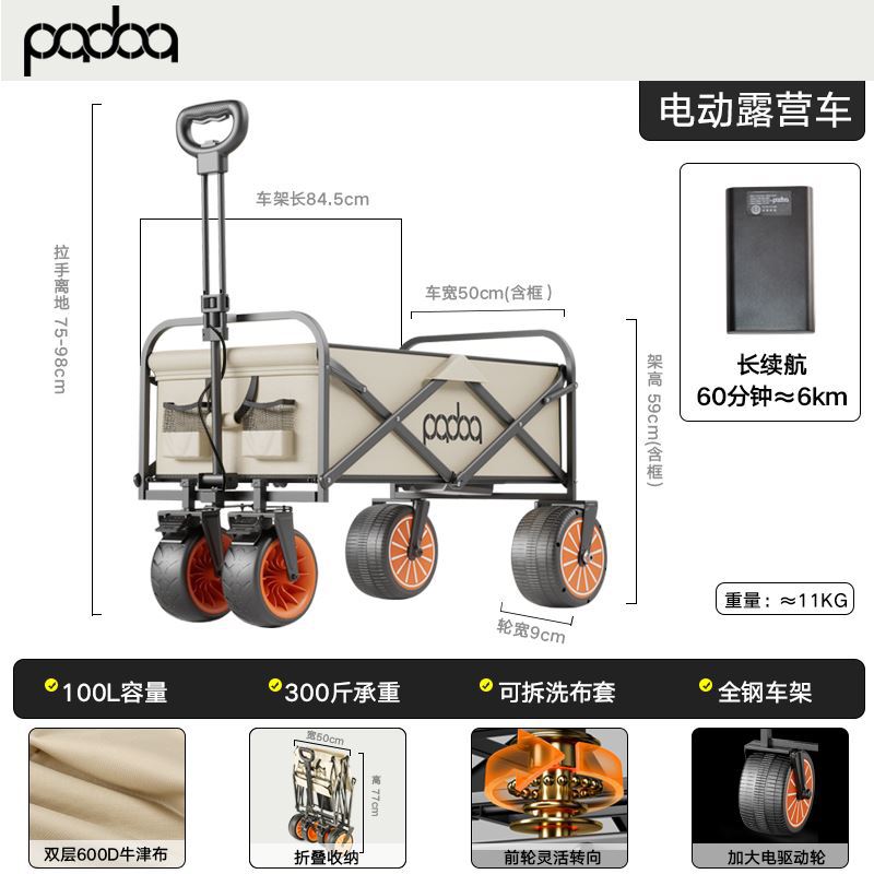 전기 캠핑카는 사람을 태울 수 있으며 여행을 돕고 접이식 야외 캠핑 카트, 대용량 여행 피크닉 트레일러