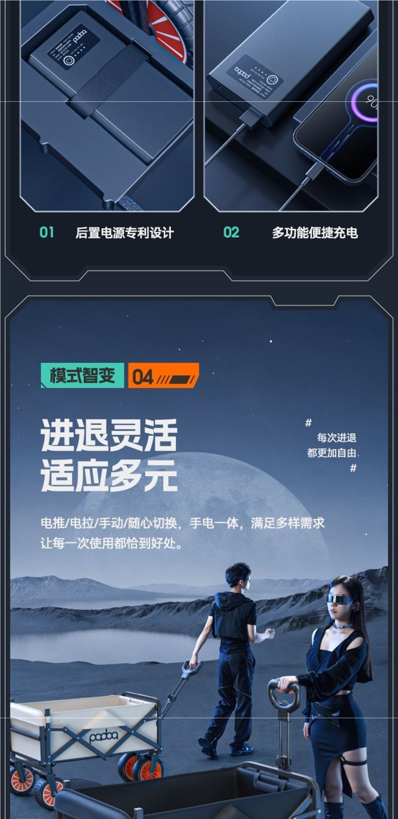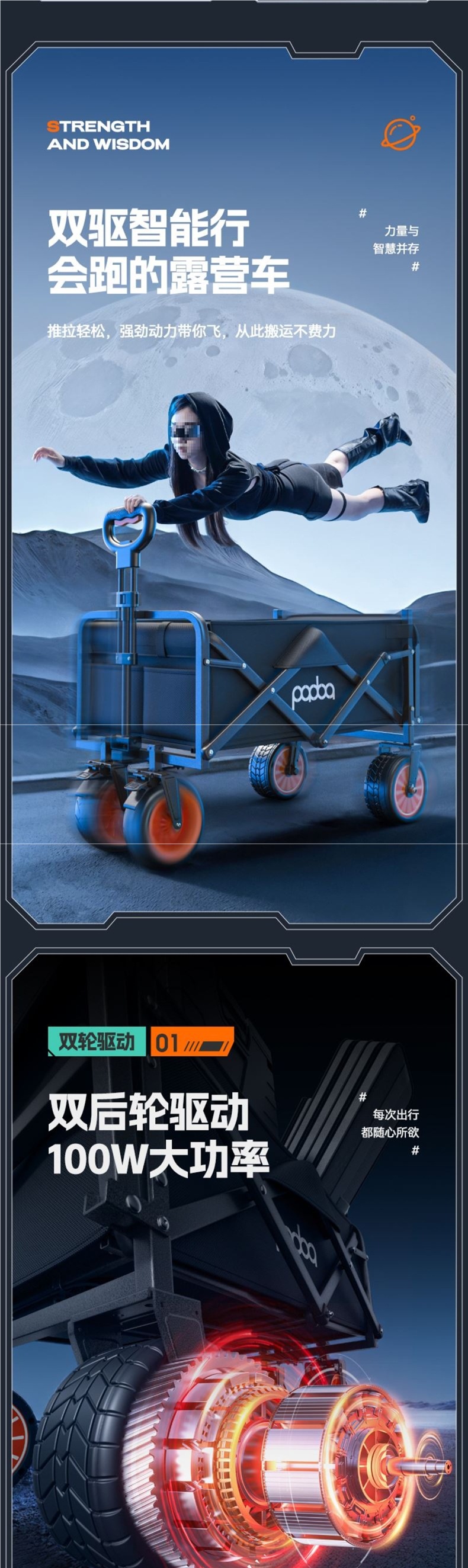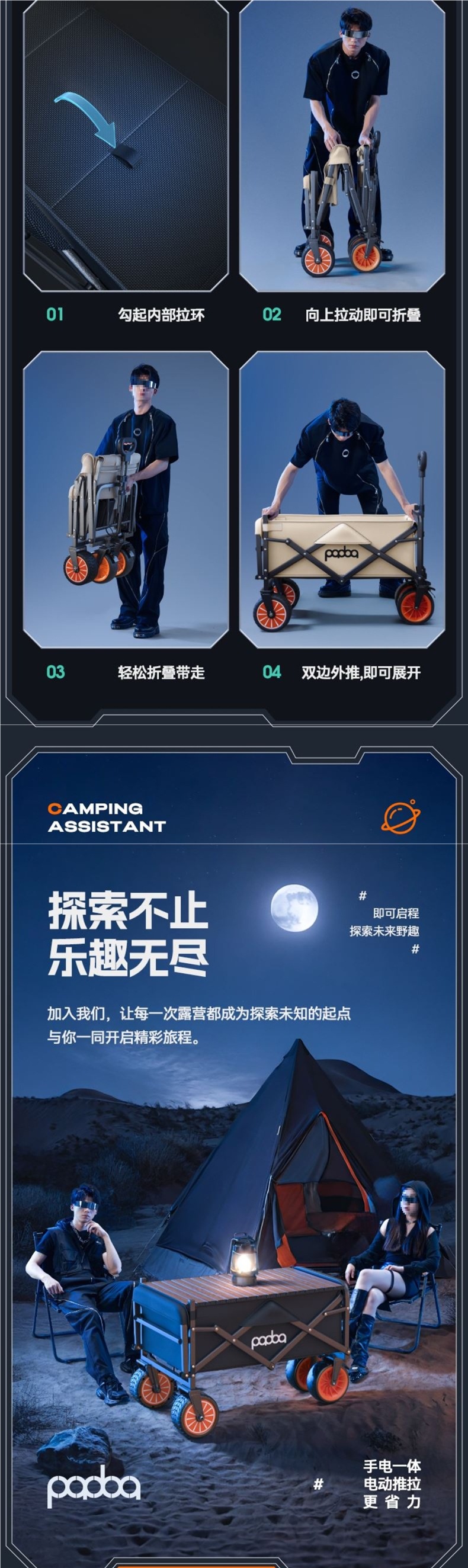 전기 캠핑카는 사람을 태울 수 있으며 여행을 돕고 접이식 야외 캠핑 카트, 대용량 여행 피크닉 트레일러