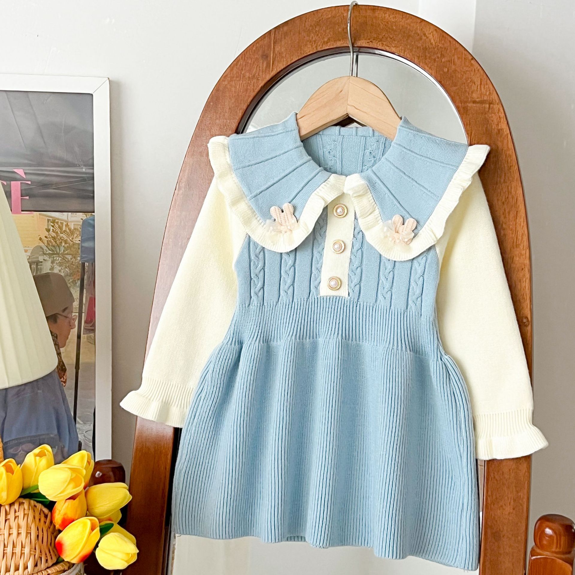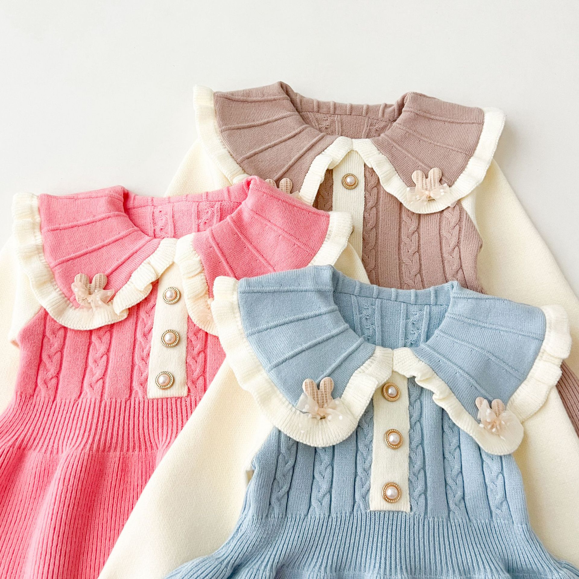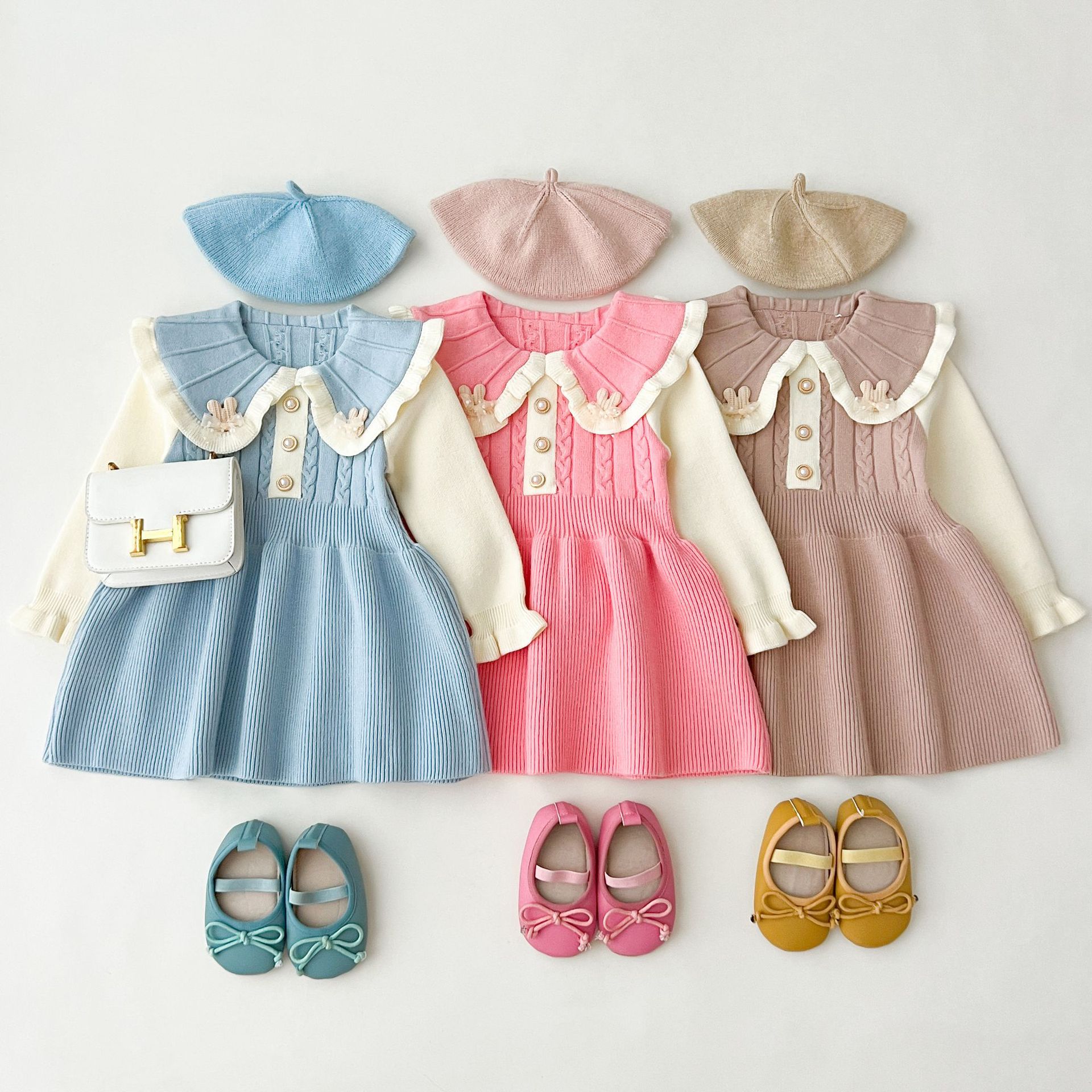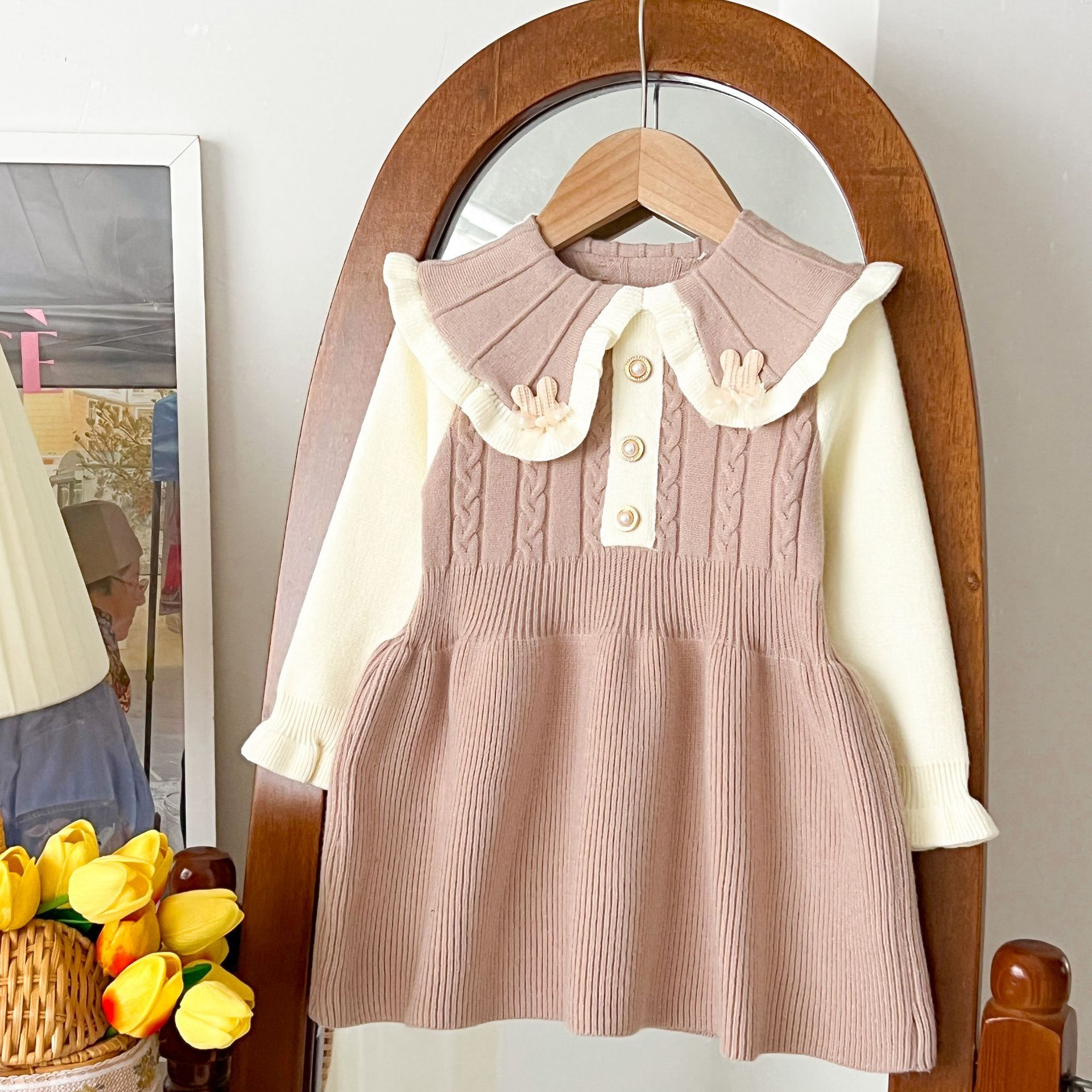 여자 스웨터 드레스 2025 가을, 겨울 새로운 여자 한국 스타일 유행 라펠 솔리드 컬러 토끼 드레스