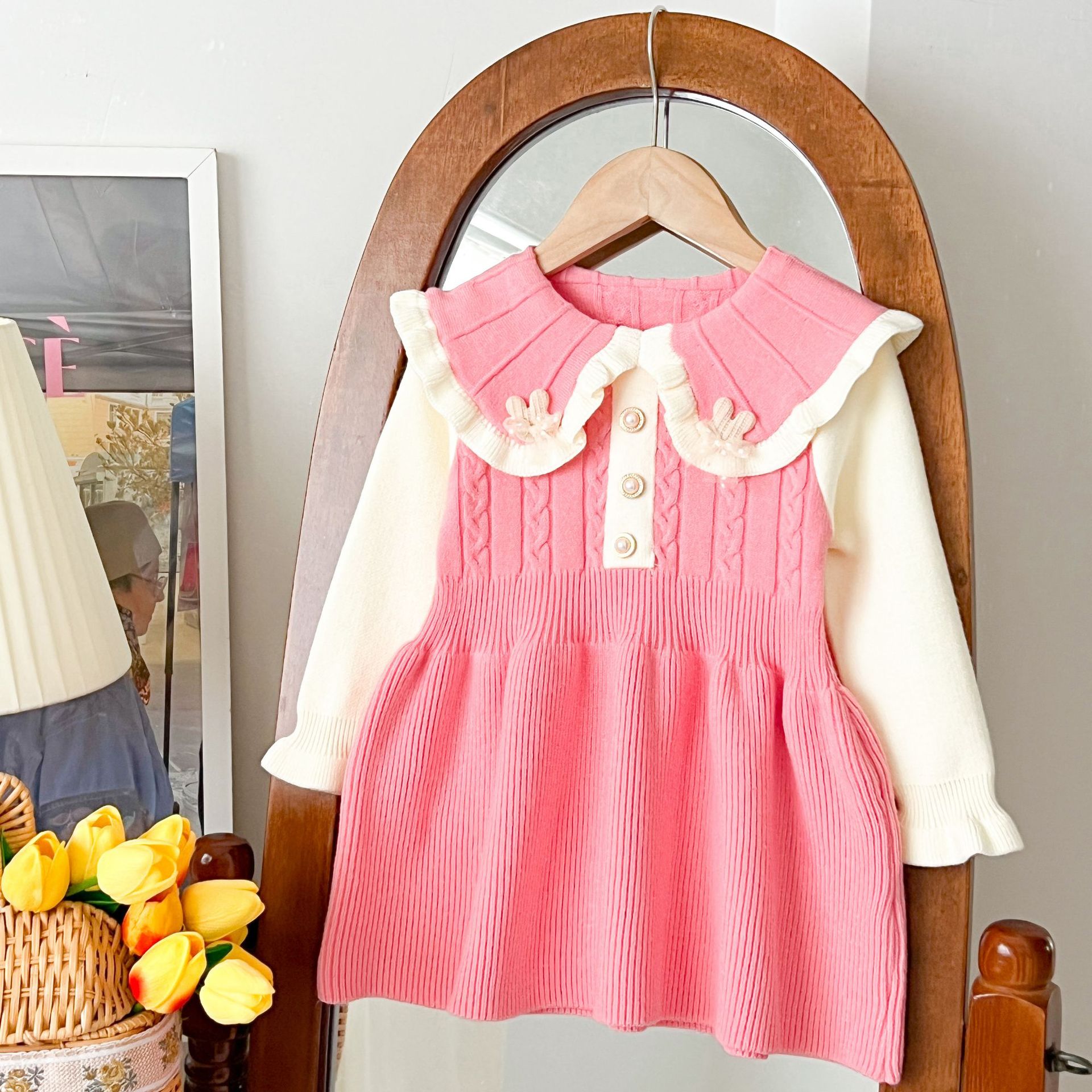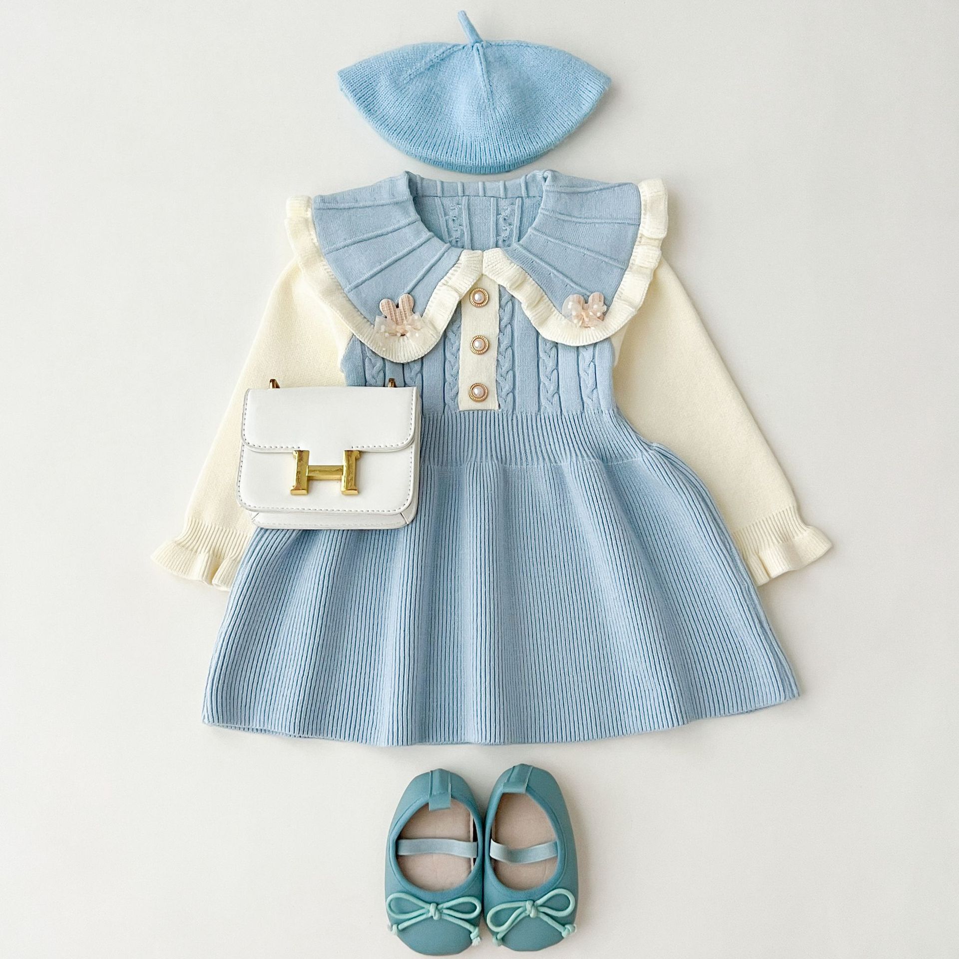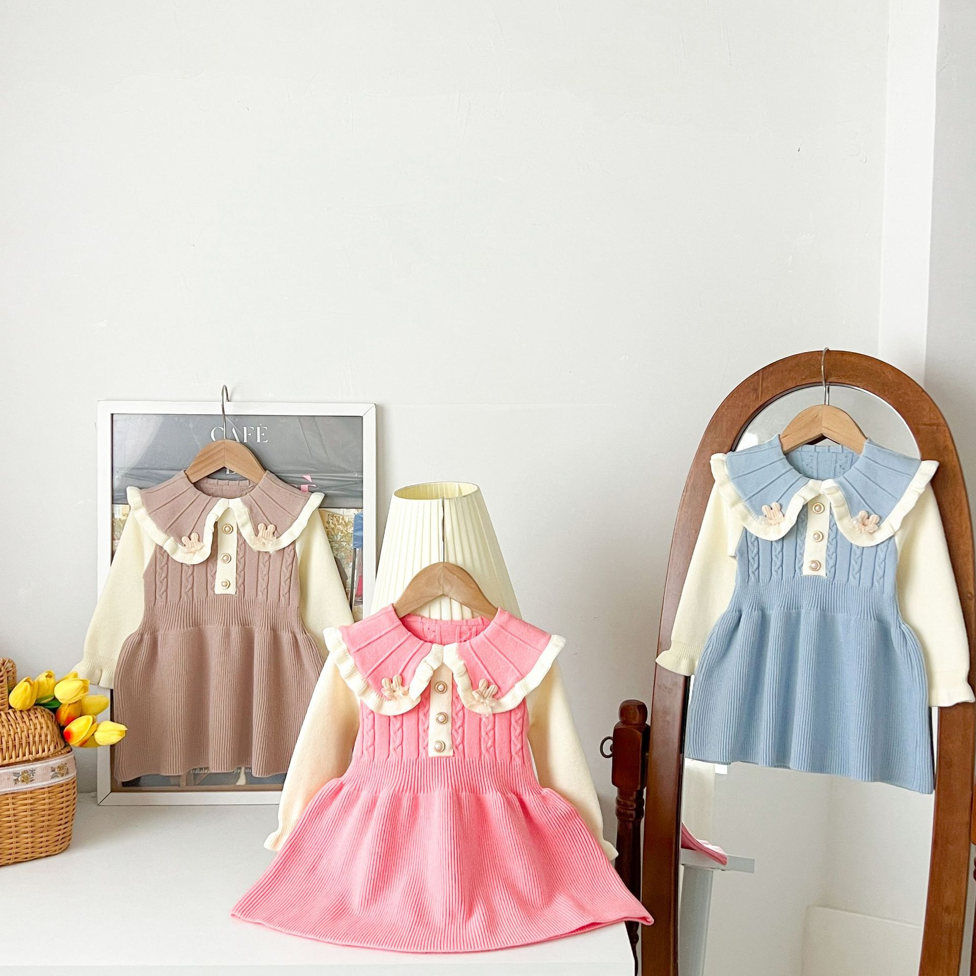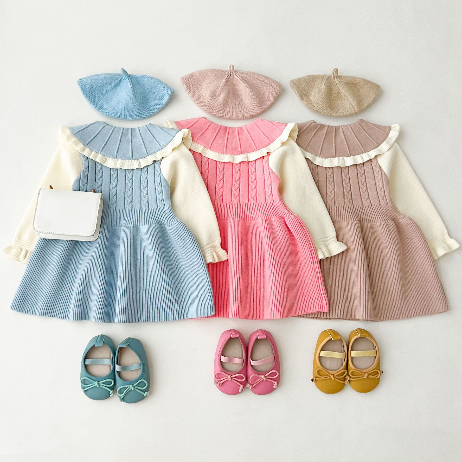 여자 스웨터 드레스 2025 가을, 겨울 새로운 여자 한국 스타일 유행 라펠 솔리드 컬러 토끼 드레스
