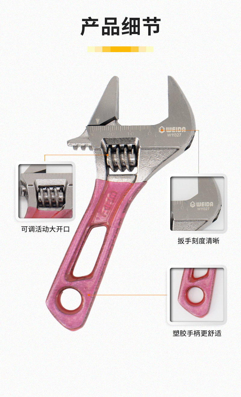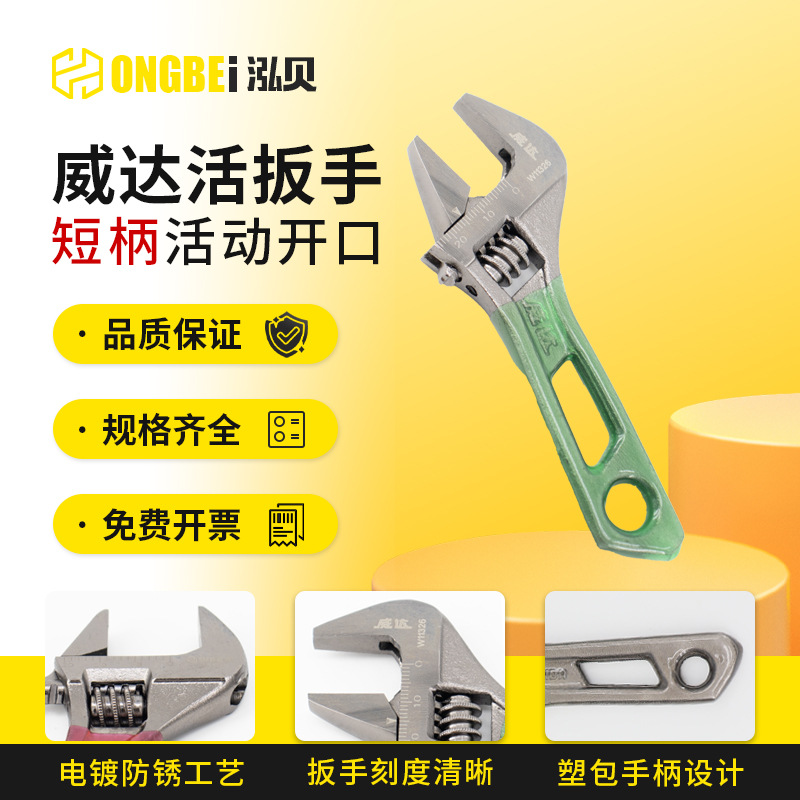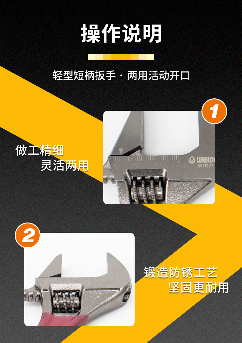 Weida 개방형 렌치, 짧은 손잡이 소형 렌치, 미니 조절 렌치, 짧은 손잡이 욕실 대구경 조절 렌치