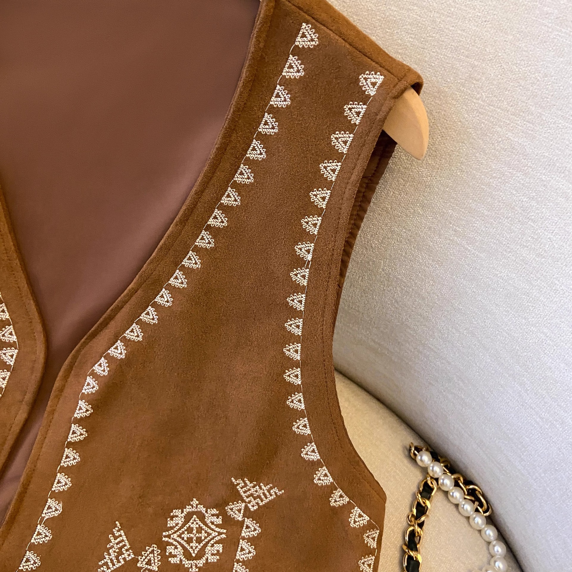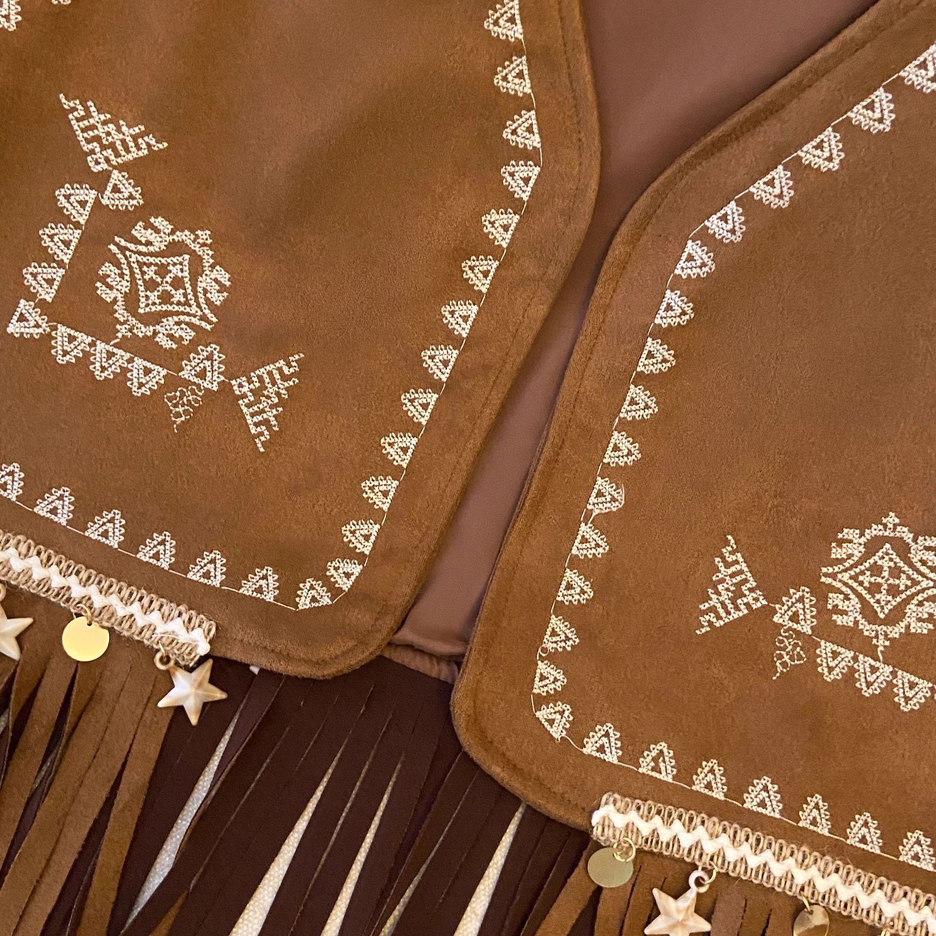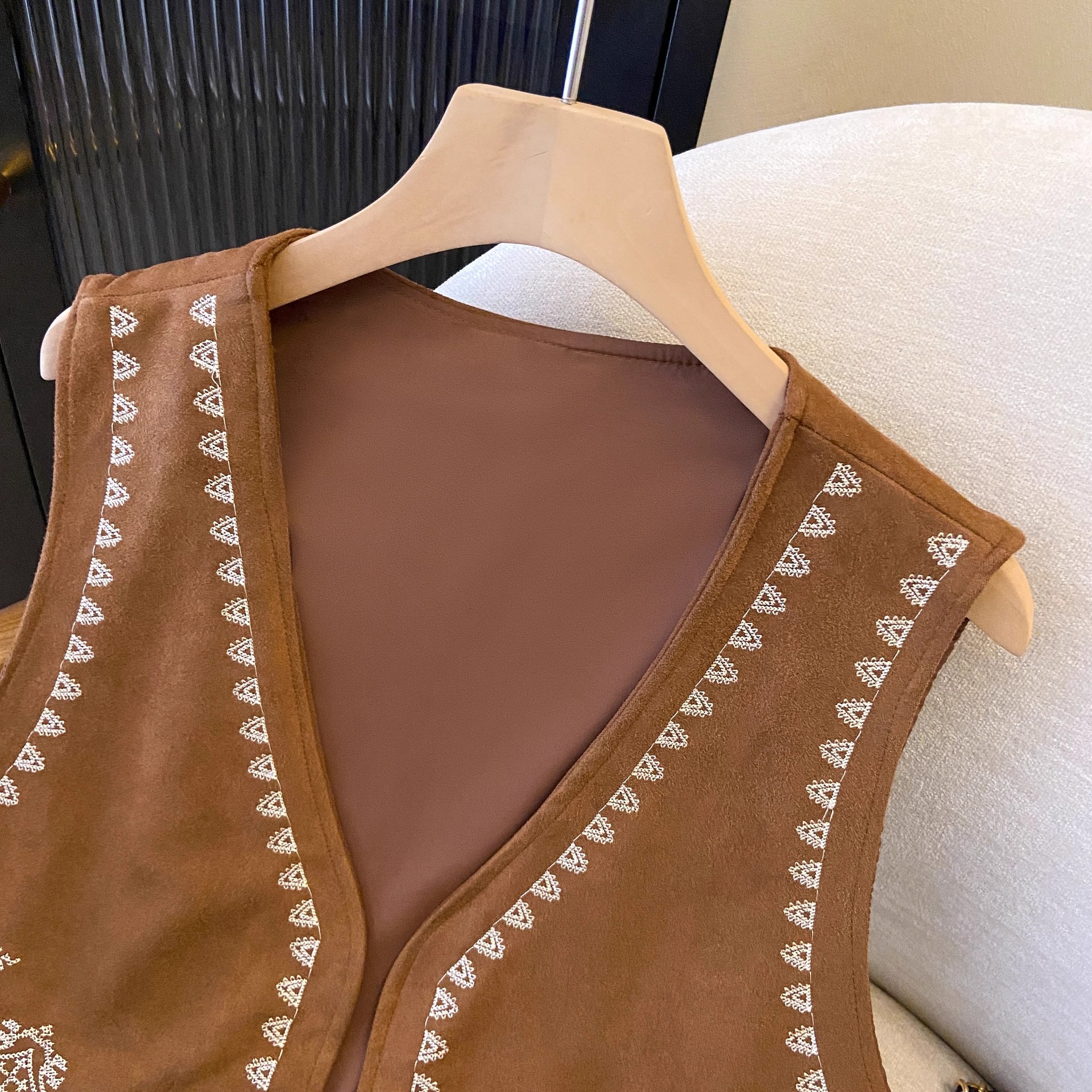 여성용 운남 서부 휴가 복고풍 술 조끼, 스웨이드 레이어드 민소매 탑, 에스닉 스타일 자수 아우터스토어 가기