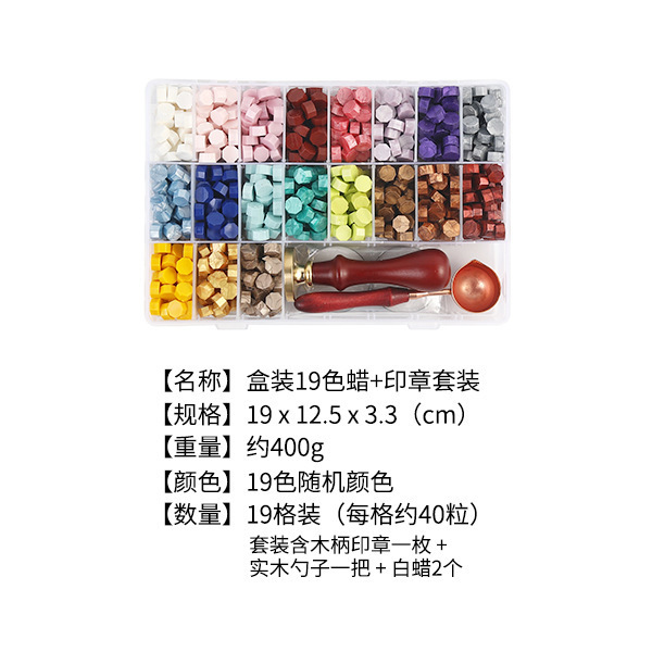 • [박스형 왁스 스탬프 세트] 19색 * 40캡슐 (나무 손잡이 스탬프 1개 + 원목 스푼 1개 + 화이트 왁스 2개 포함)