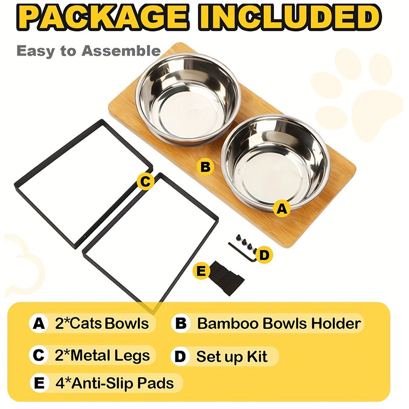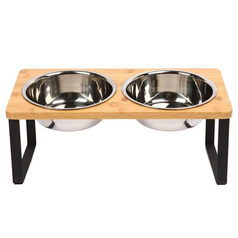 맞춤형 개 그릇 랙, 이중 그릇 고양이 그릇 랙, 대나무 나무 철 다리, 무료 라벨링 공급 Amazon