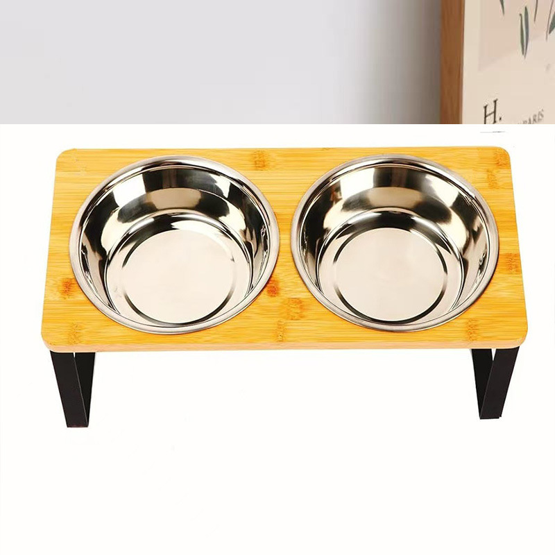 맞춤형 개 그릇 랙, 이중 그릇 고양이 그릇 랙, 대나무 나무 철 다리, 무료 라벨링 공급 Amazon스토어 가기