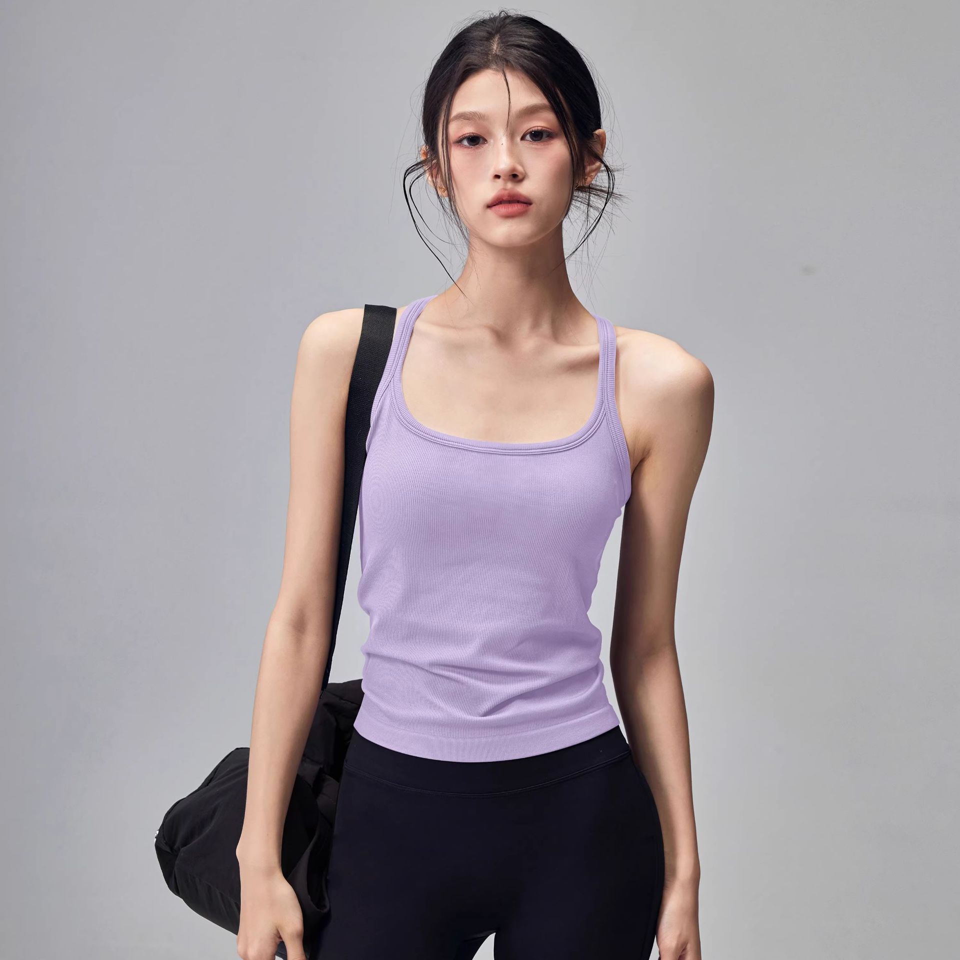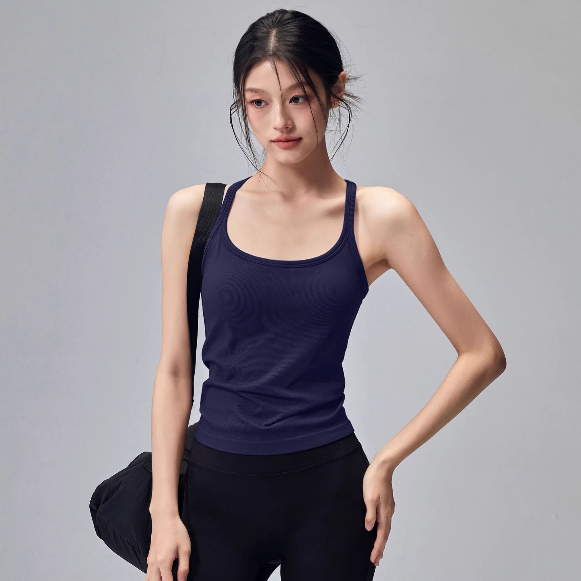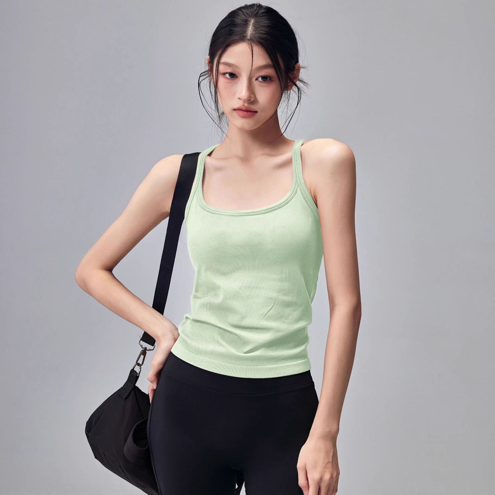 가슴 패드가 있는 여성용 요가 조끼, 스포츠 브라, 신축성 있는 피트니스 슬링, I자형 슬리밍 런닝 아우터 탑 여름스토어 가기