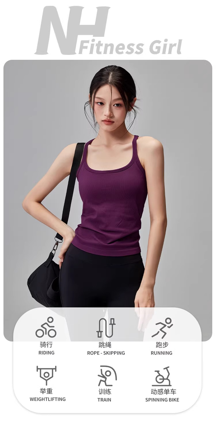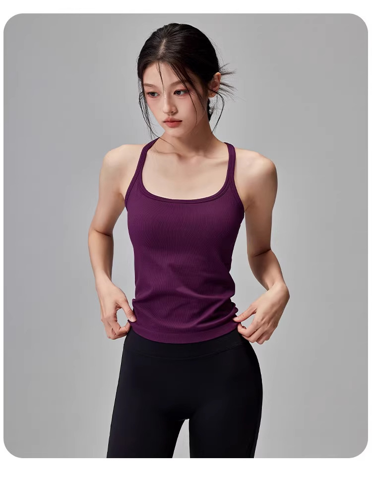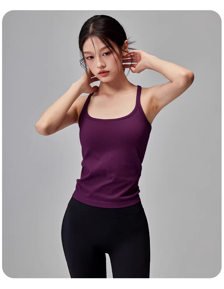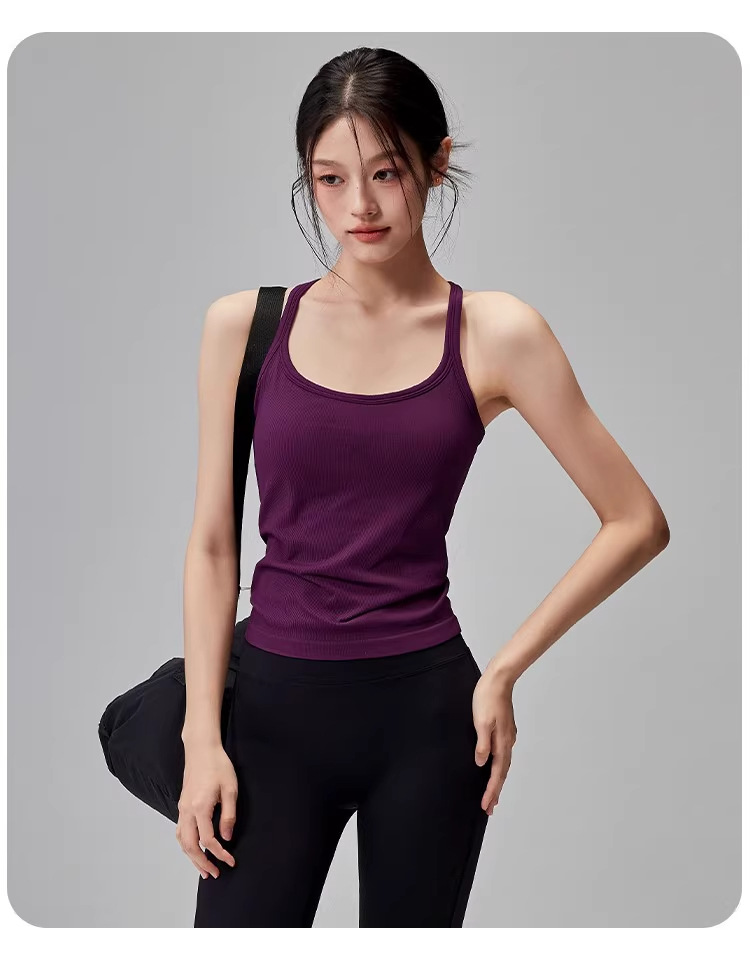 가슴 패드가 있는 여성용 요가 조끼, 스포츠 브라, 신축성 있는 피트니스 슬링, I자형 슬리밍 런닝 아우터 탑 여름스토어 가기