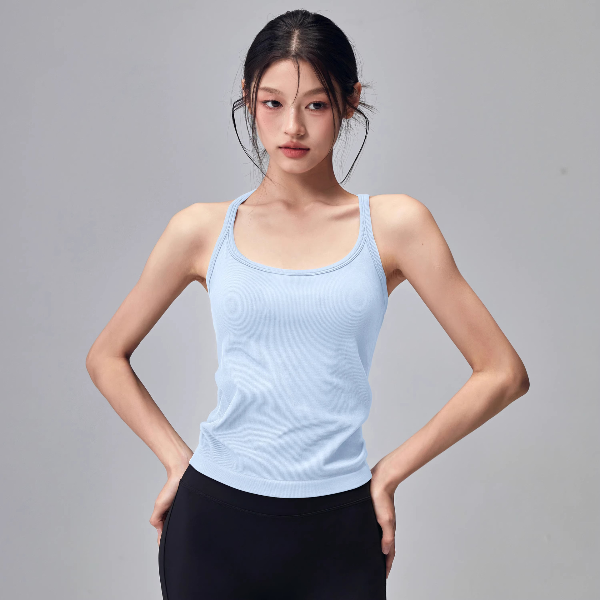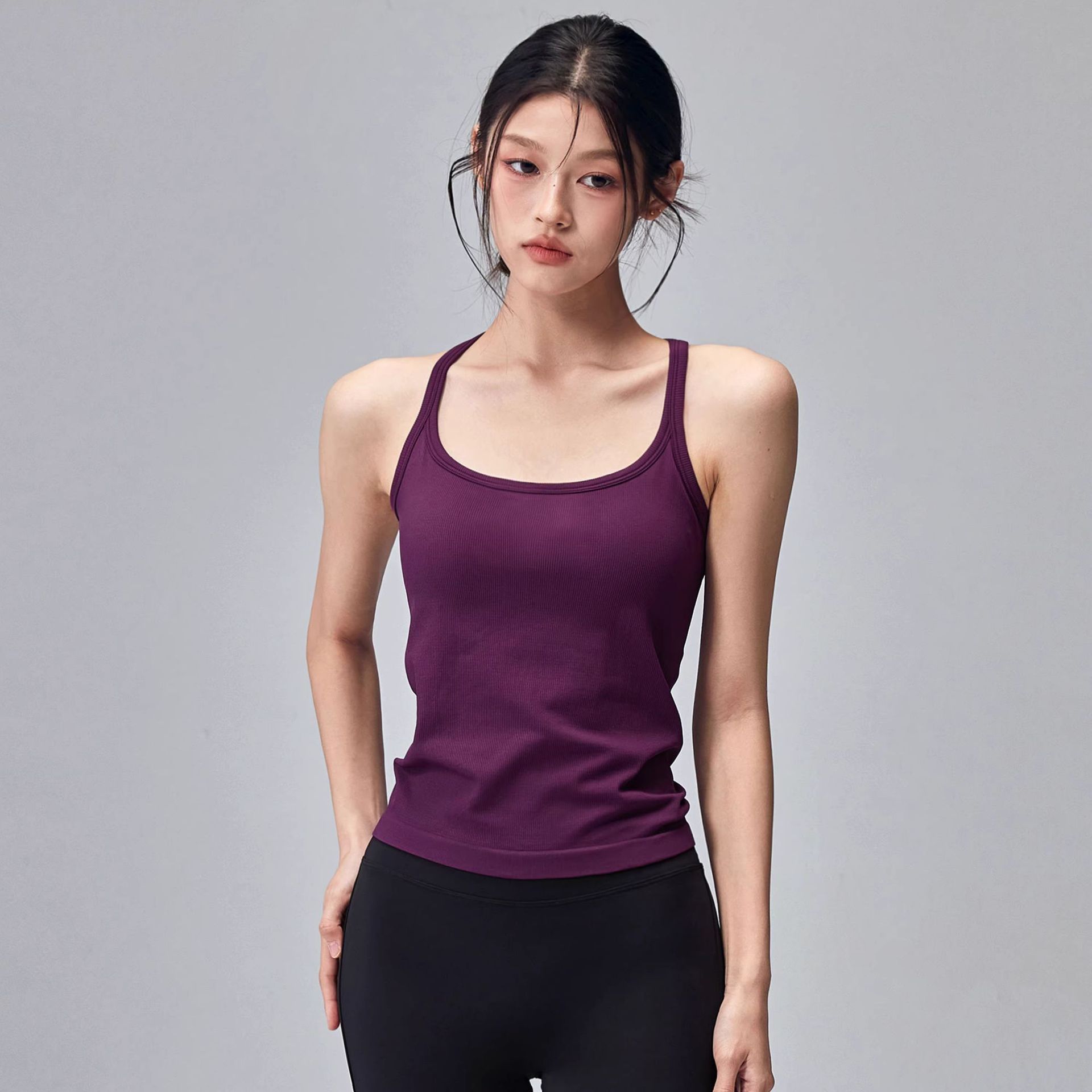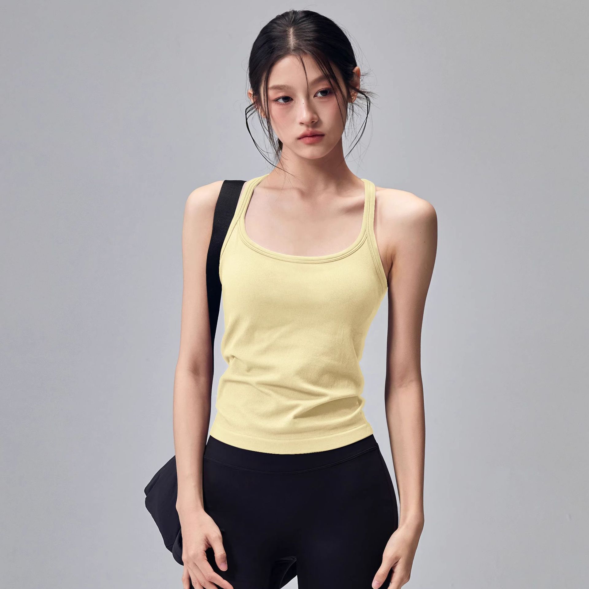 가슴 패드가 있는 여성용 요가 조끼, 스포츠 브라, 신축성 있는 피트니스 슬링, I자형 슬리밍 런닝 아우터 탑 여름