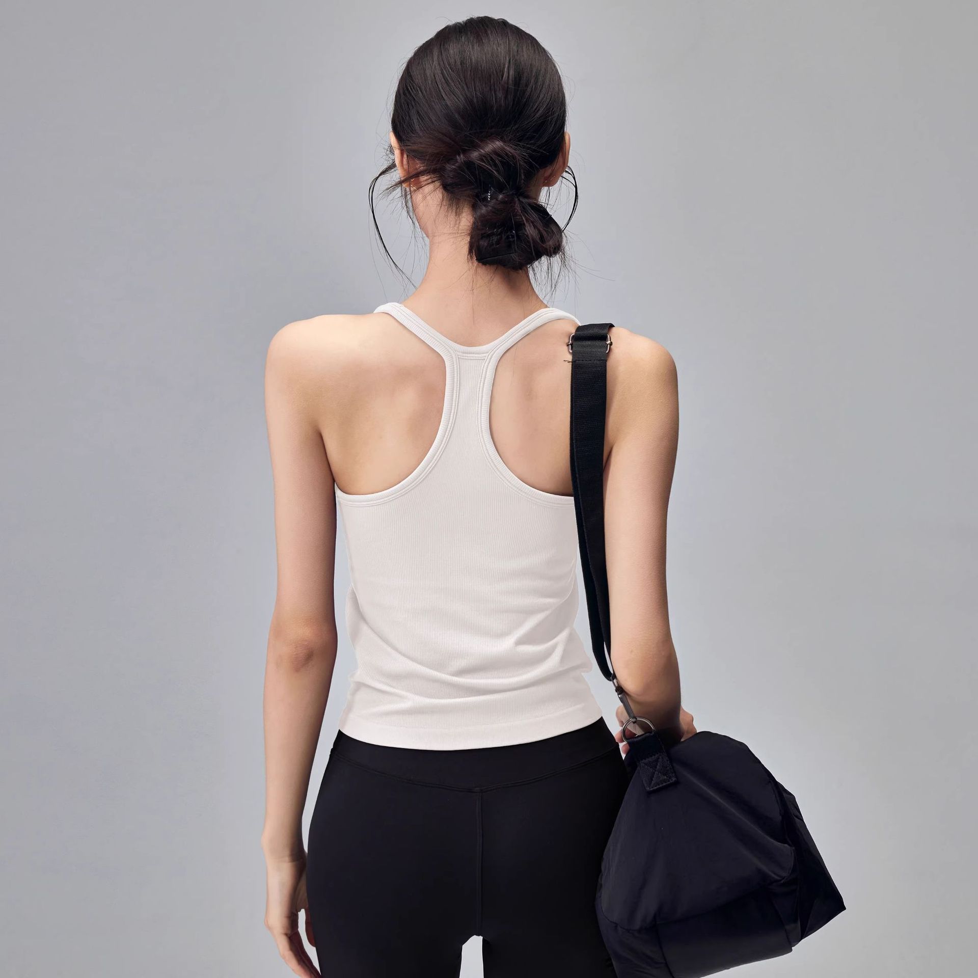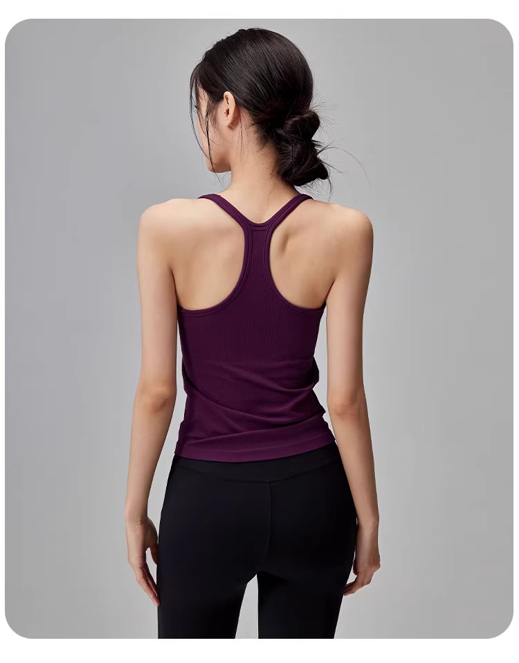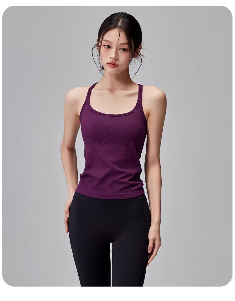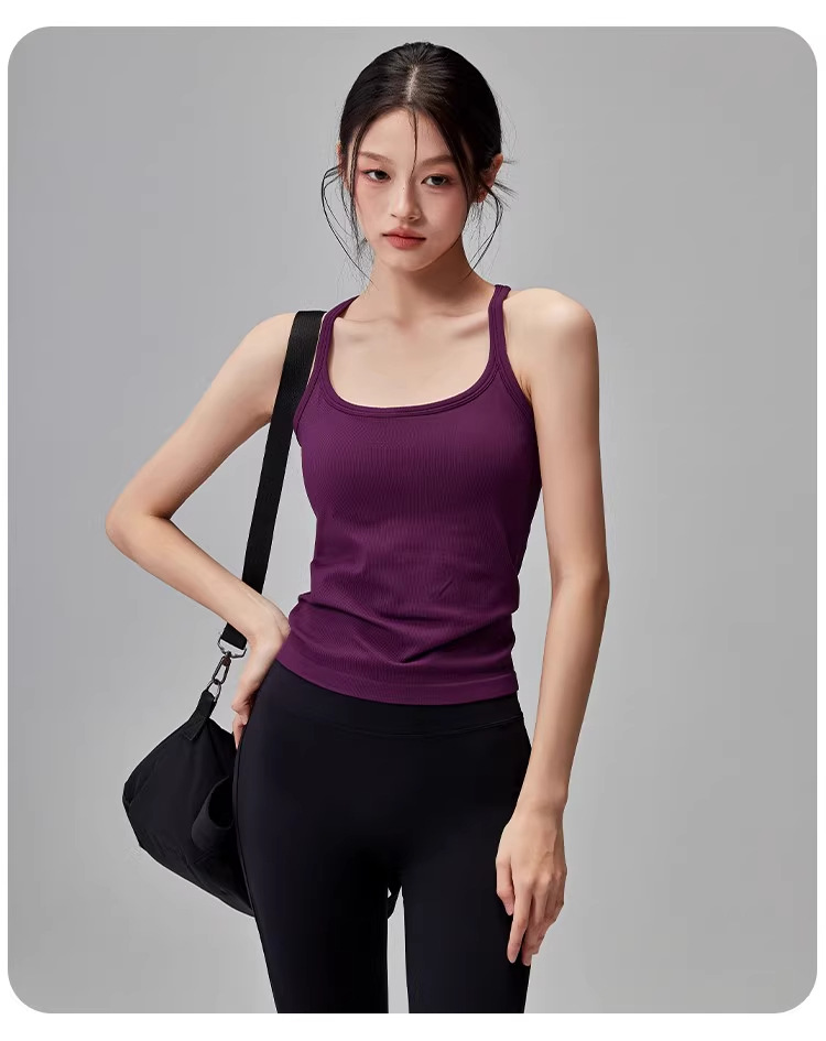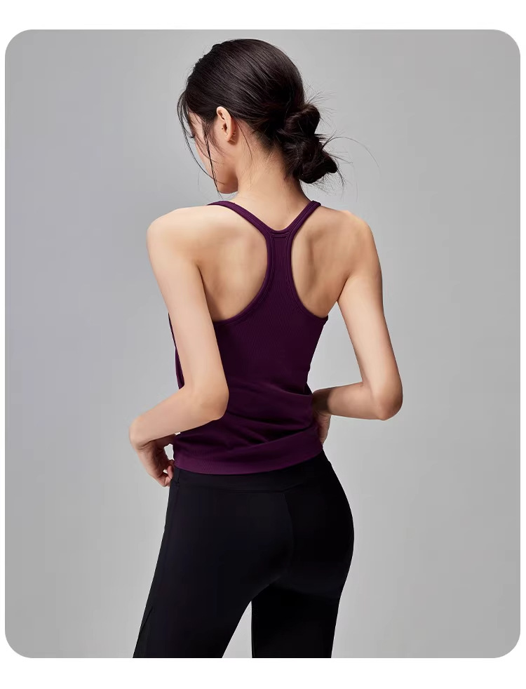 가슴 패드가 있는 여성용 요가 조끼, 스포츠 브라, 신축성 있는 피트니스 슬링, I자형 슬리밍 런닝 아우터 탑 여름