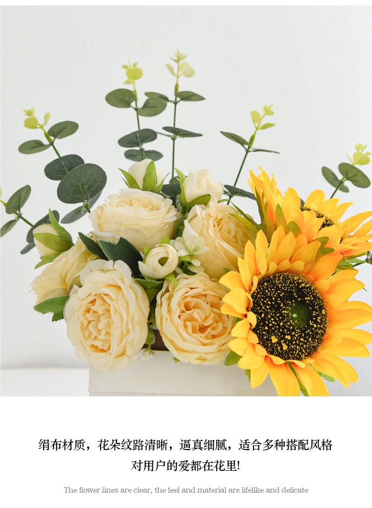 해바라기 가짜 꽃 장식 거실 식탁 꽃 장식 꽃 침실 말린 꽃다발 실크 꽃 장식