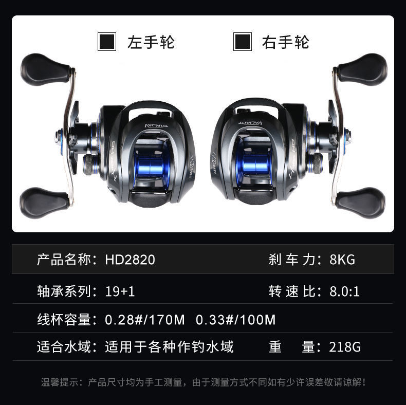 Hasda 초경량 금속 이중 브레이크 블랙 낚시 릴 방폭 라인 워터 드롭 릴 Luya 장거리 투척 18 축 마그네틱 브레이크 드립 릴