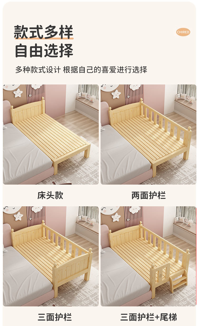 단단한 나무 어린이 침대 유아용 침대 아기 확대 대형 침대 소녀 싱글 소년 침대 옆 유아용 침대 가드 레일 접합 공장스토어 가기