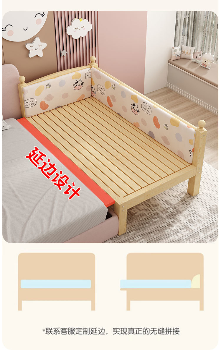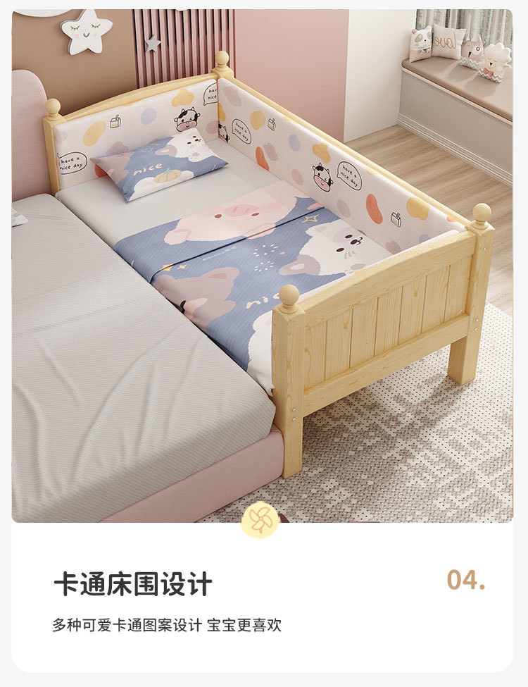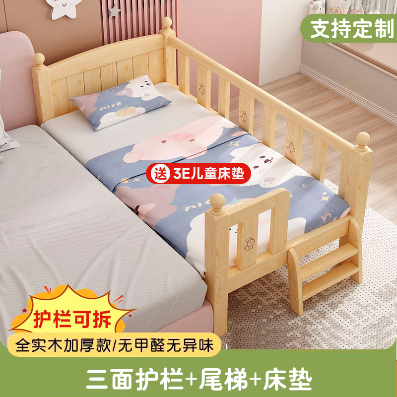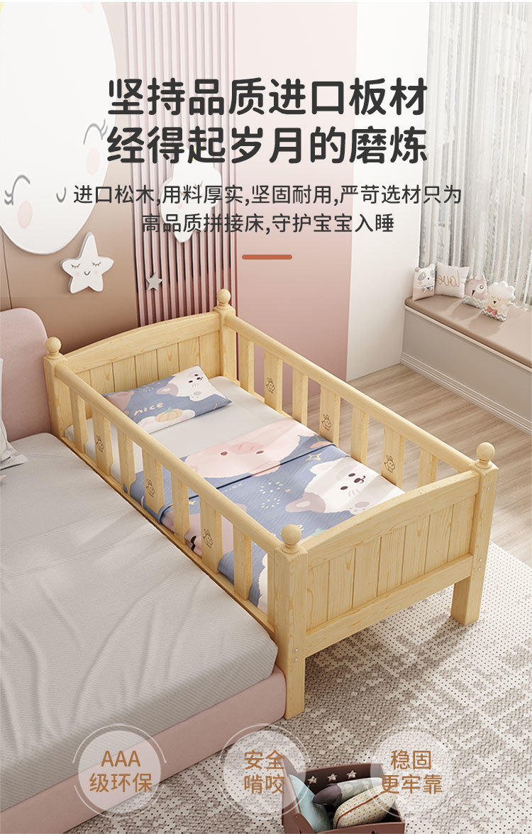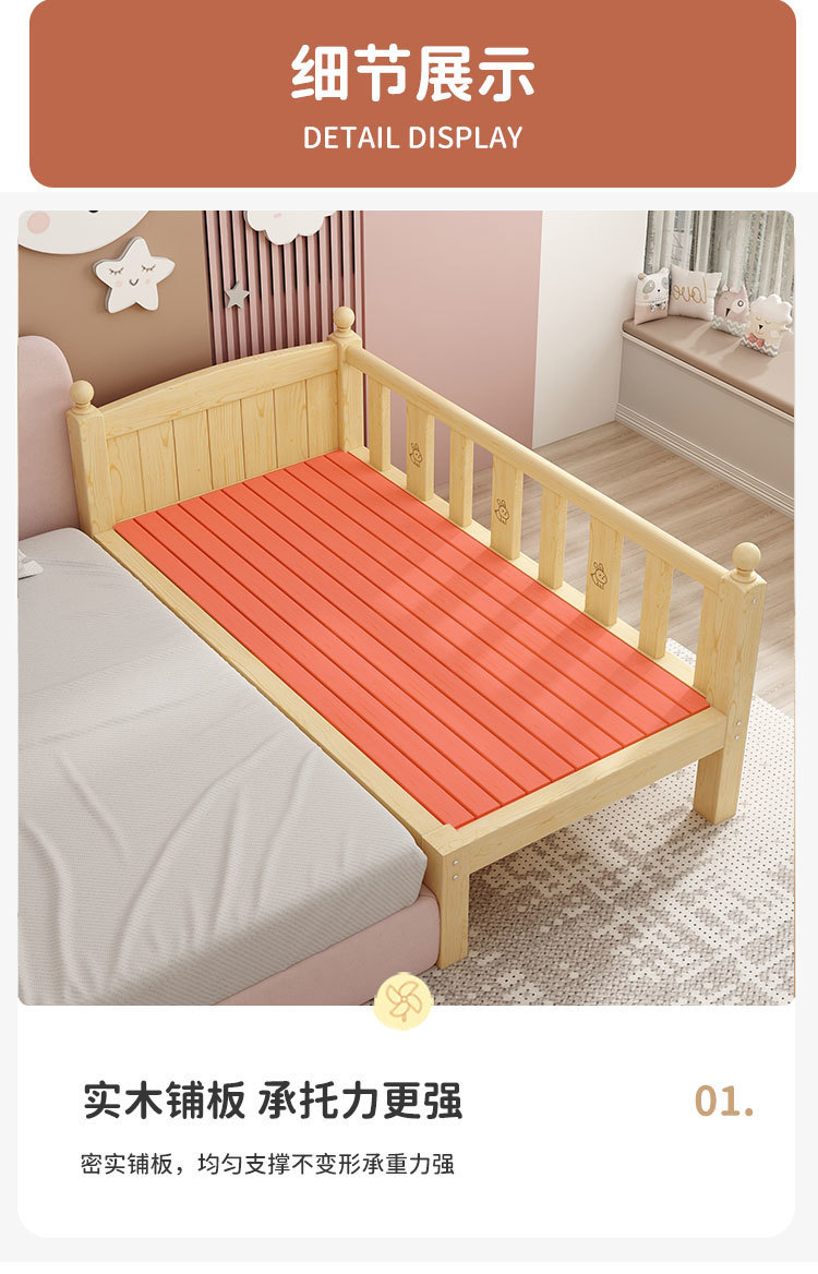 단단한 나무 어린이 침대 유아용 침대 아기 확대 대형 침대 소녀 싱글 소년 침대 옆 유아용 침대 가드 레일 접합 공장