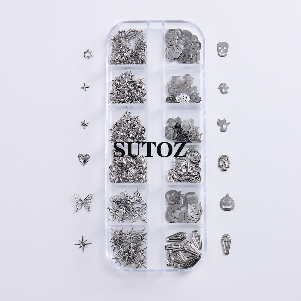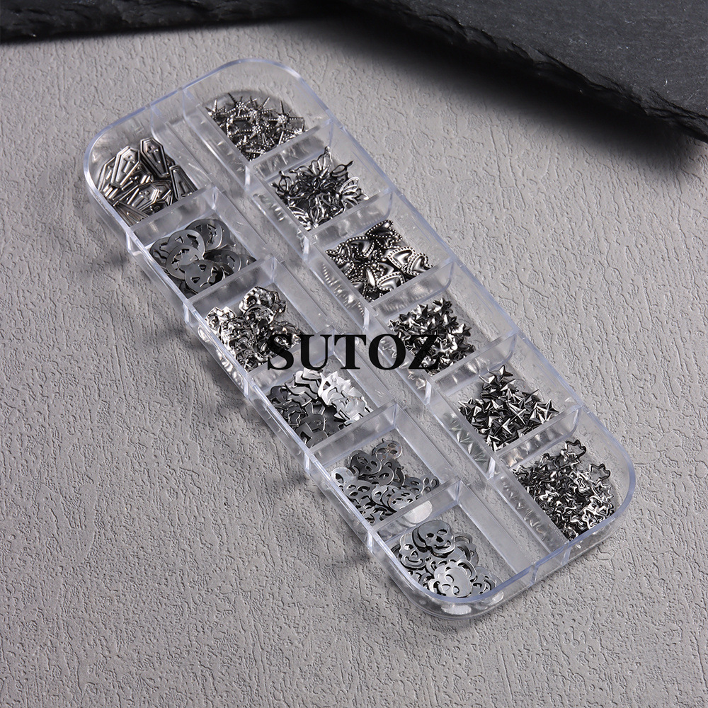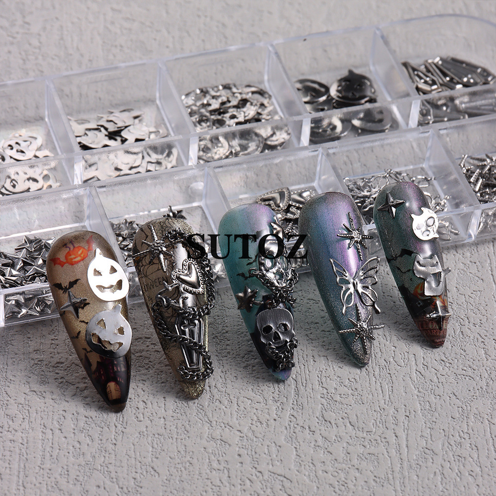 2025 할로윈 새로운 네일 아트 스팽글 유럽과 미국의 핫 메탈 해골 유령 스타 네일 장식스토어 가기
