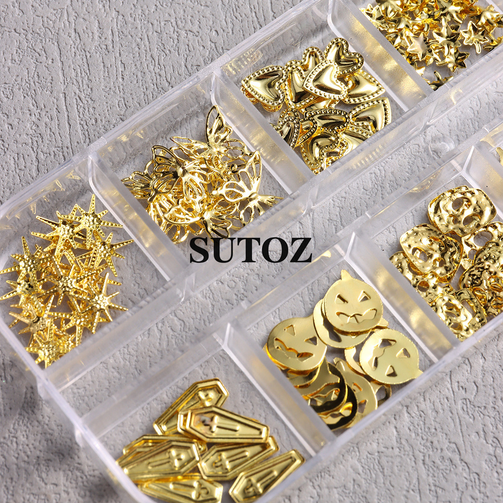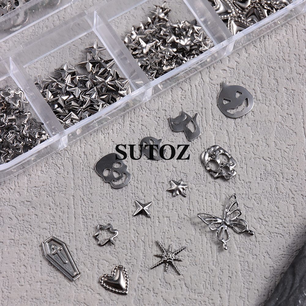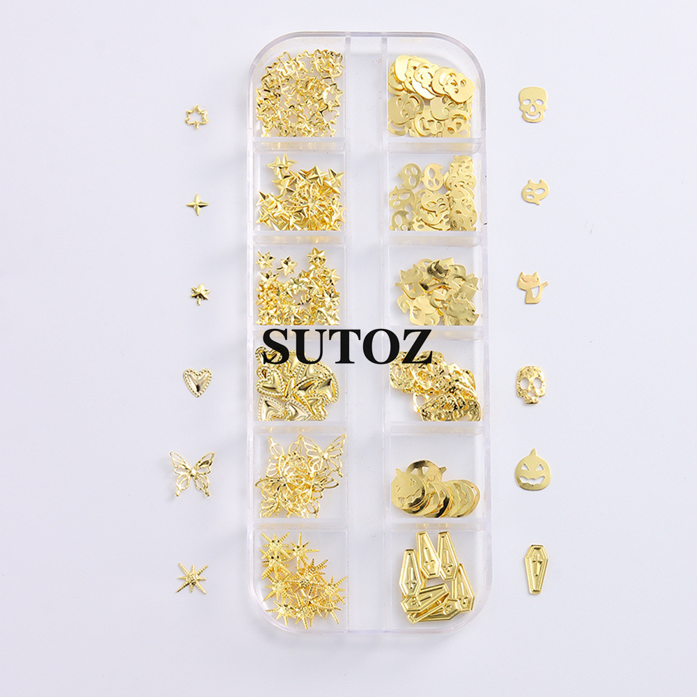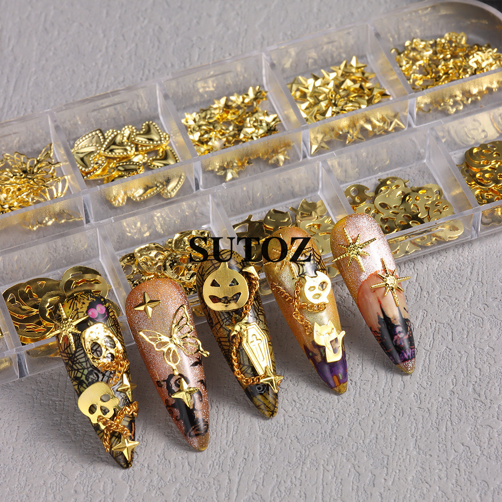 2025 할로윈 새로운 네일 아트 스팽글 유럽과 미국의 핫 메탈 해골 유령 스타 네일 장식스토어 가기