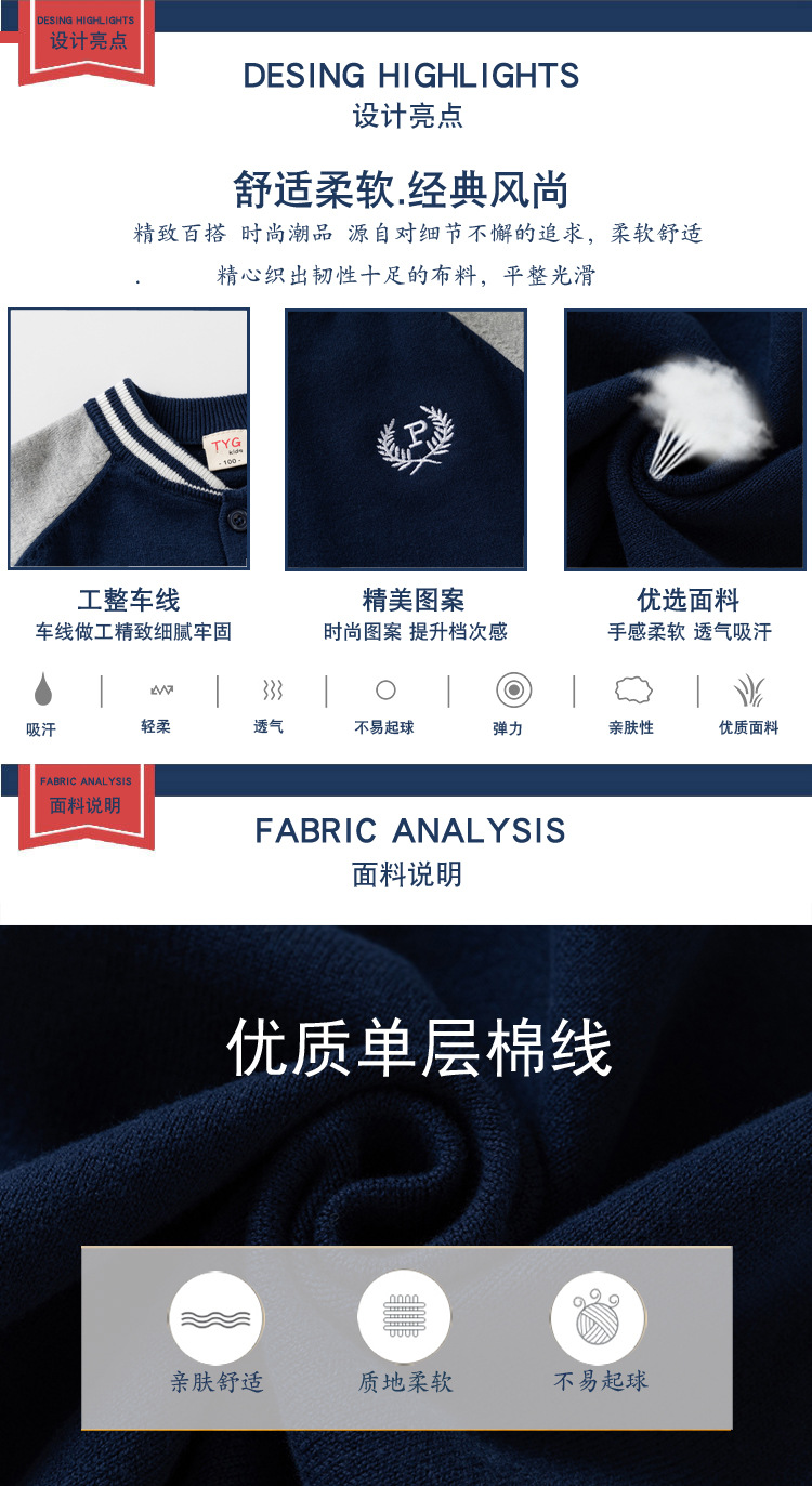 아동용 스웨터 드롭 배송 가을 새 소년 단층 면 니트 재킷 중소 어린이 자수 가디건