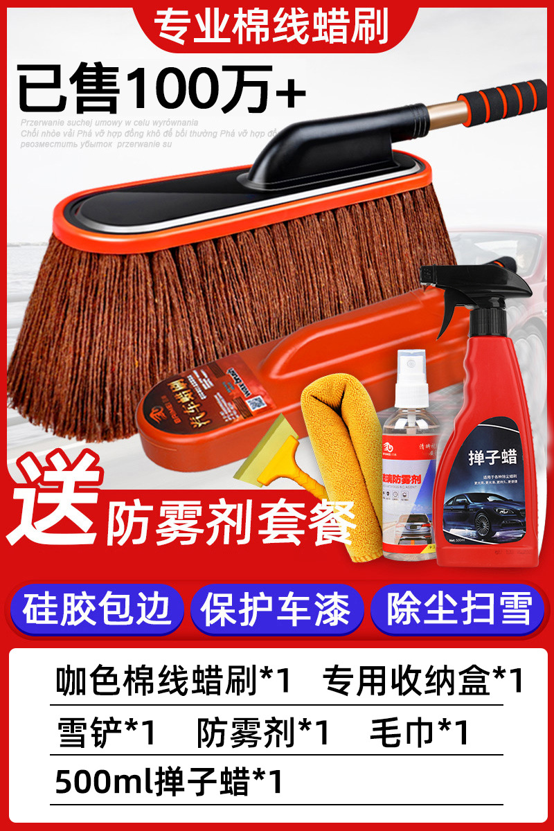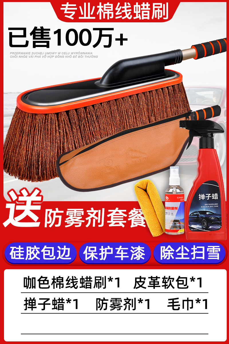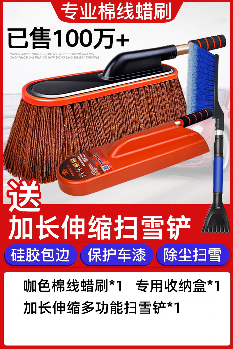 • R 커피 컬러 코튼 브러시 + 보관 상자 + 500ml 더스터 왁스 + 다기능 확장 텔레스코픽 눈 삽