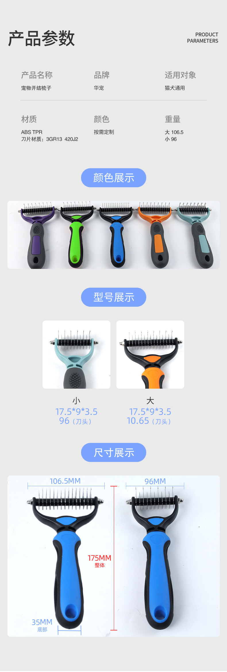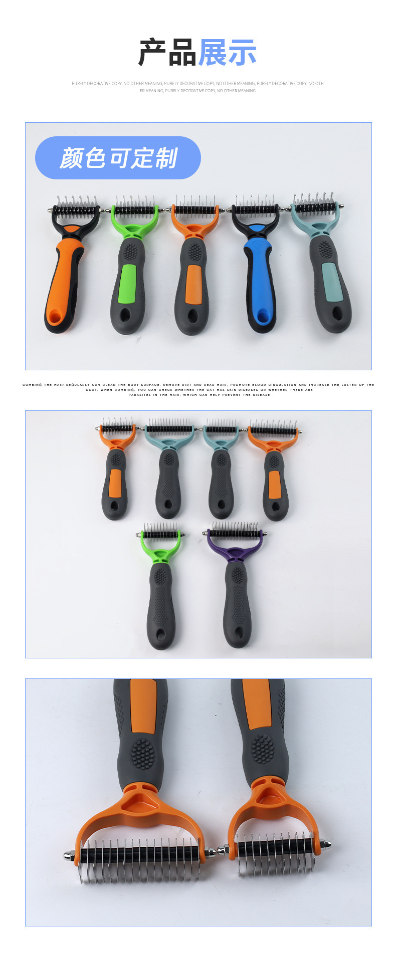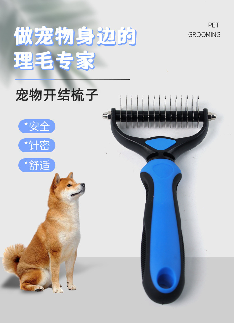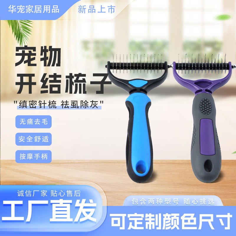 맞춤형 긴 머리 애완동물 매듭 풀림 빗, 강아지 털 제거 및 이중 목적 강아지 골든 리트리버 고양이 범용 빗