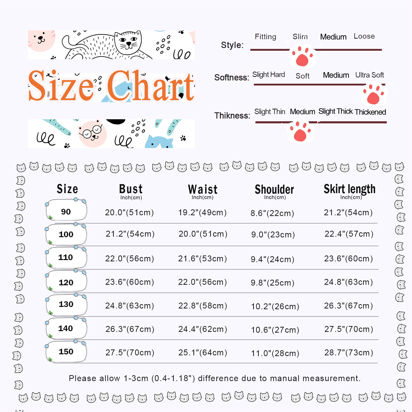 3 平铺测量尺码所产生的正常误差范围是1-3厘米