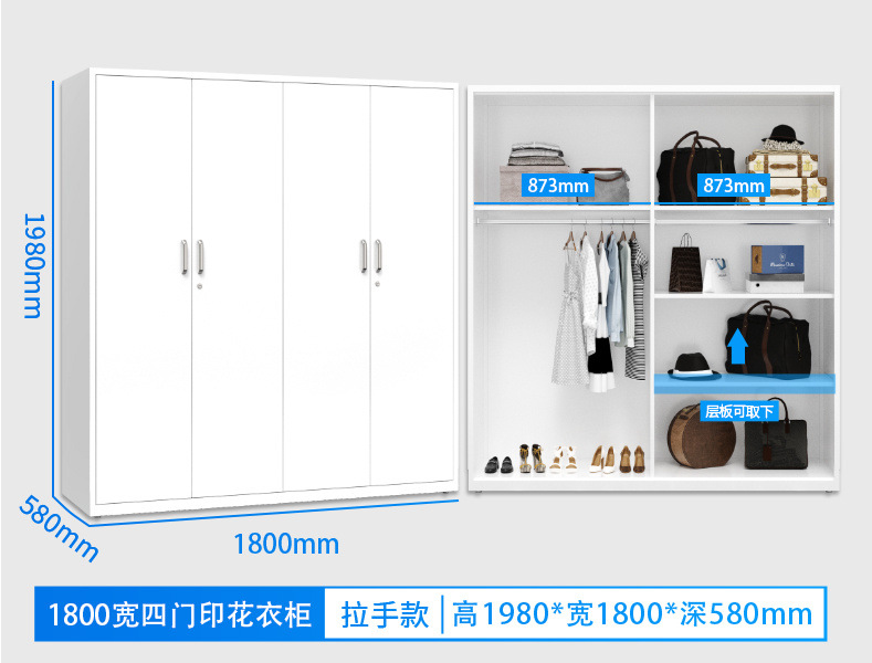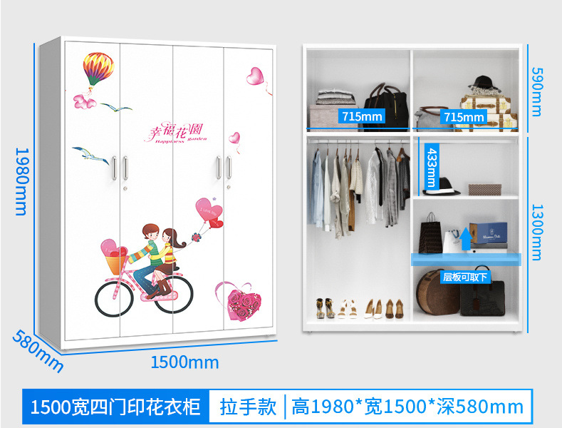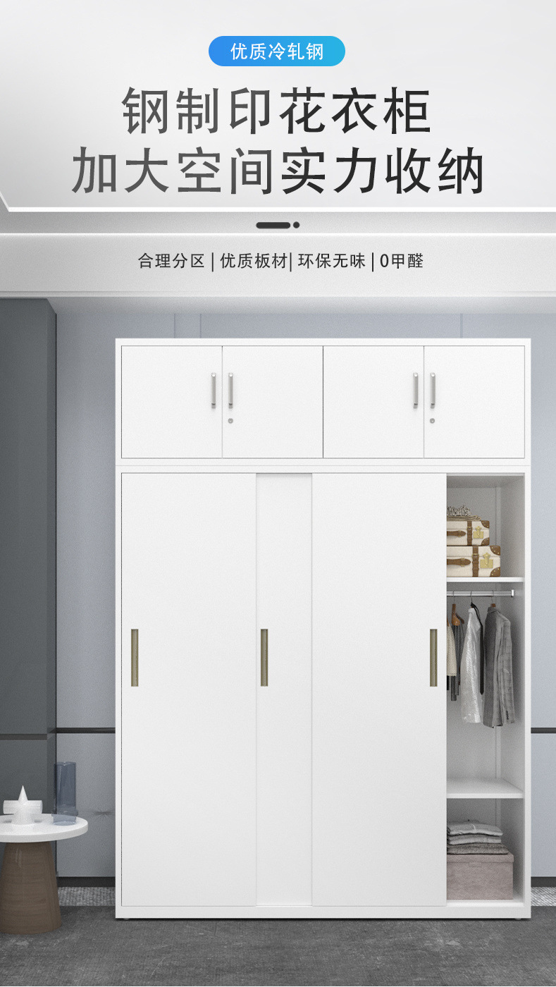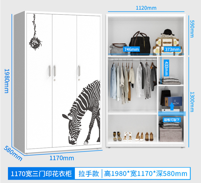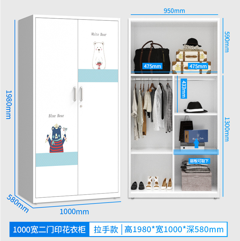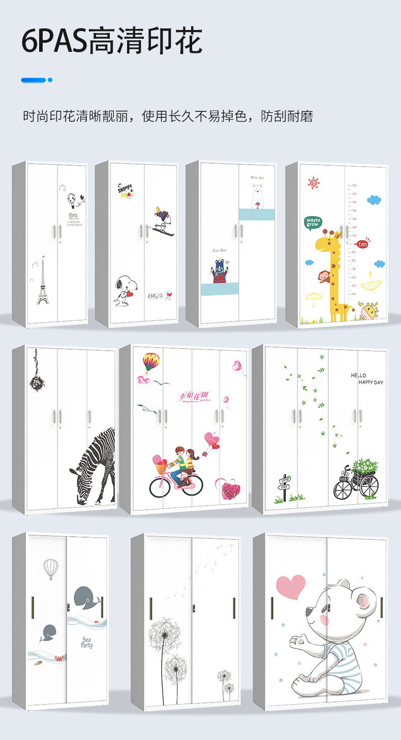 잠금 장치가있는 철제 옷장 스틸 홈 침실 슬라이딩 도어 어린이 인쇄 옷장 대용량 스토리지 스토리지 캐비닛