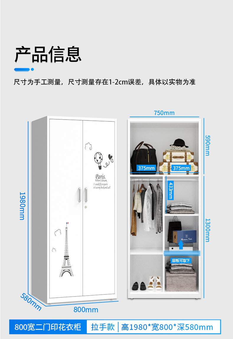 잠금 장치가있는 철제 옷장 스틸 홈 침실 슬라이딩 도어 어린이 인쇄 옷장 대용량 스토리지 스토리지 캐비닛스토어 가기