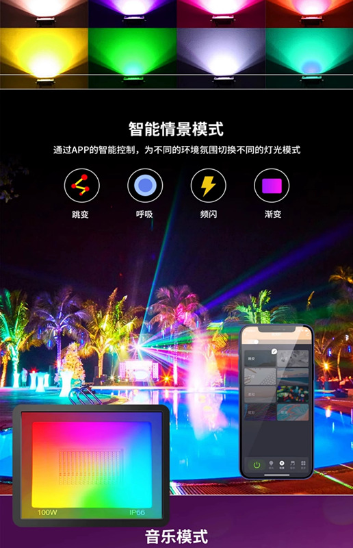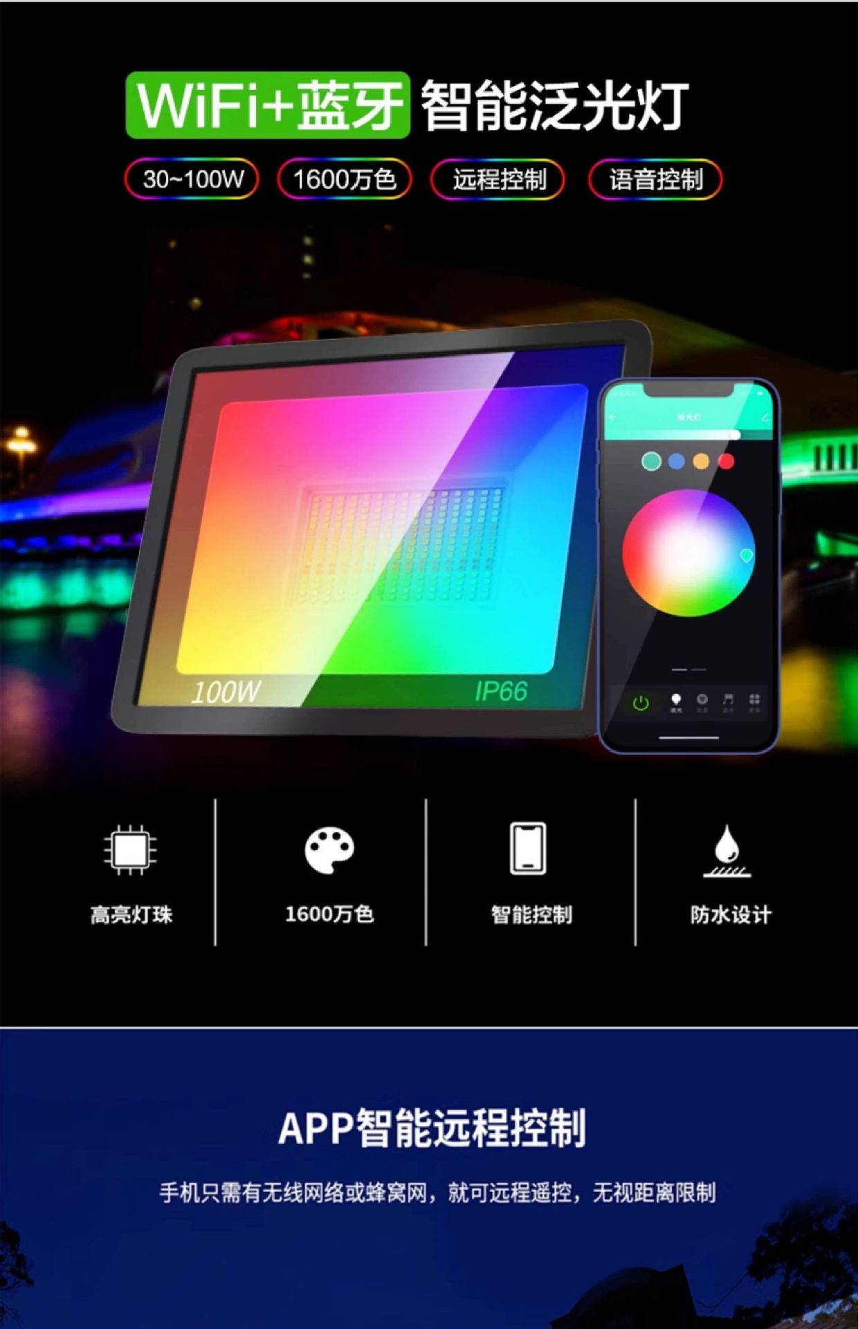 크로스보더 그래피티 스마트 WIFI 블루투스 RGBCW 신제품 APP 투광등 다채로운 정원 분위기 RGBW 투광등스토어 가기