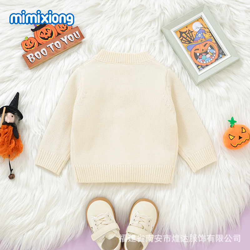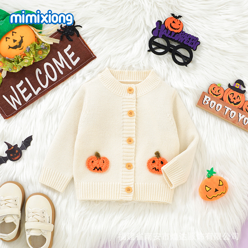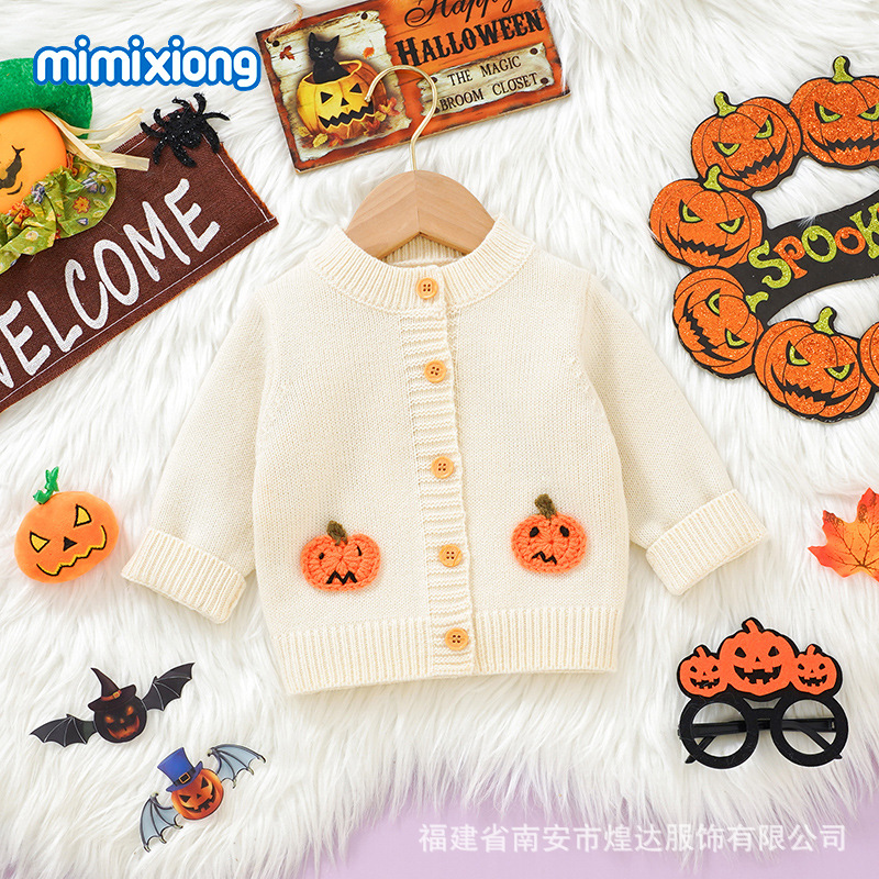 Ins 뜨거운 판매 가을, 겨울 새로운 스타일 유아 할로윈 입체 호박 패턴 니트 재킷 남성과 여성의 아기 스웨터스토어 가기