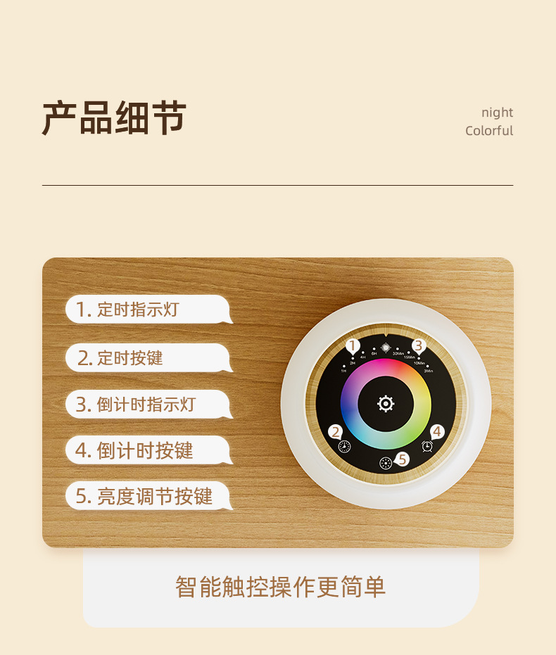 침대 옆 터치식 분위기 LED 야간등 아기 수유용 USB 충전 타이머 기능 다채로운 창의적 다기능 선물등