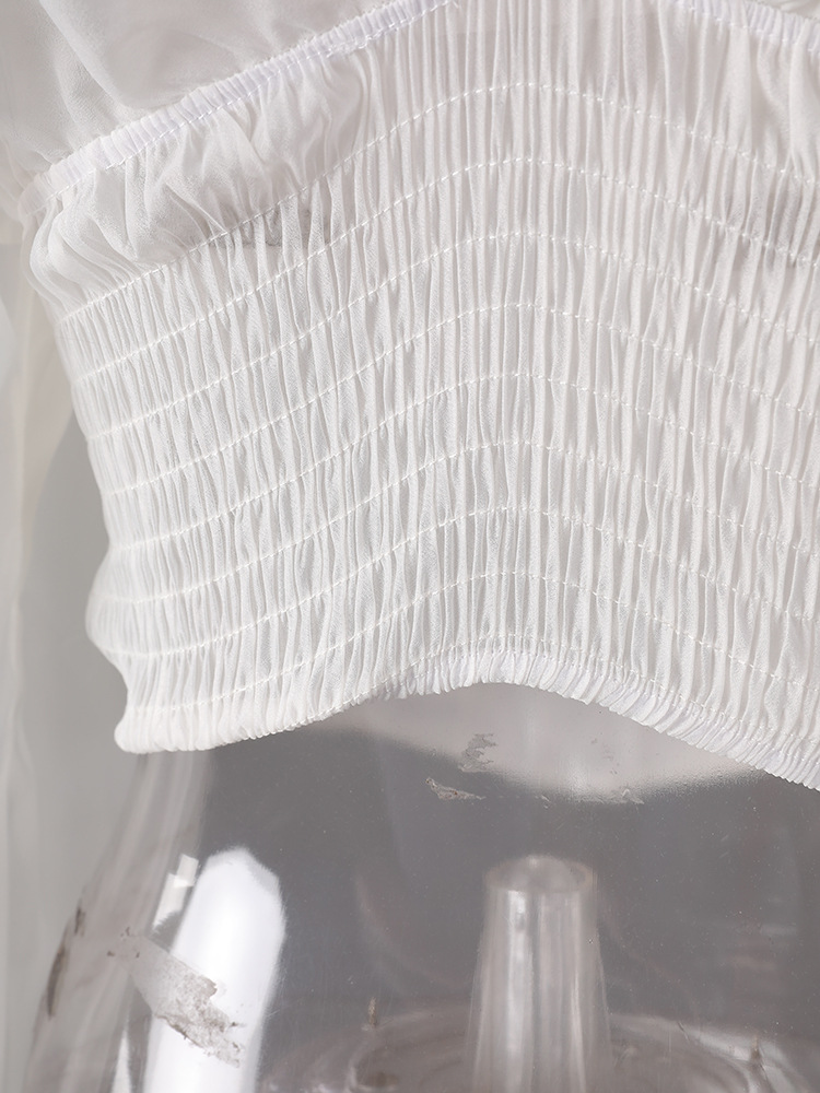 여름 디자인으로 허리를 슬림하게 만들어주는 여성용 원숄더 러플 랜턴 슬리브 쉬폰 셔츠와 섹시한 핫걸 스타일 탑