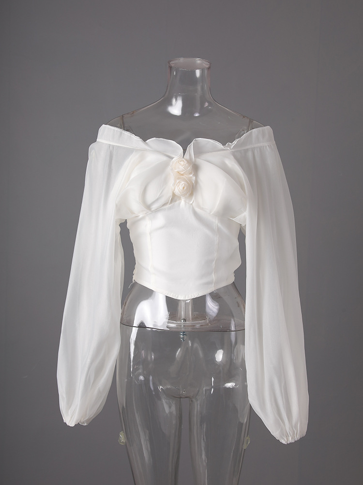 여름 디자인으로 허리를 슬림하게 만들어주는 여성용 원숄더 러플 랜턴 슬리브 쉬폰 셔츠와 섹시한 핫걸 스타일 탑스토어 가기