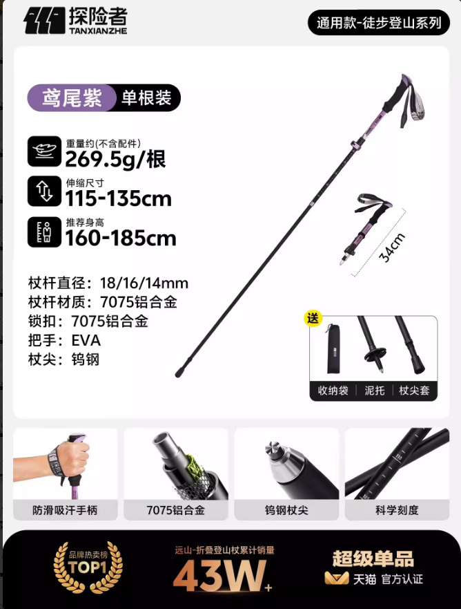• 카본 컬러 [탄소 섬유 접이식 트레킹 폴] 탄소강 합금 폴 팁