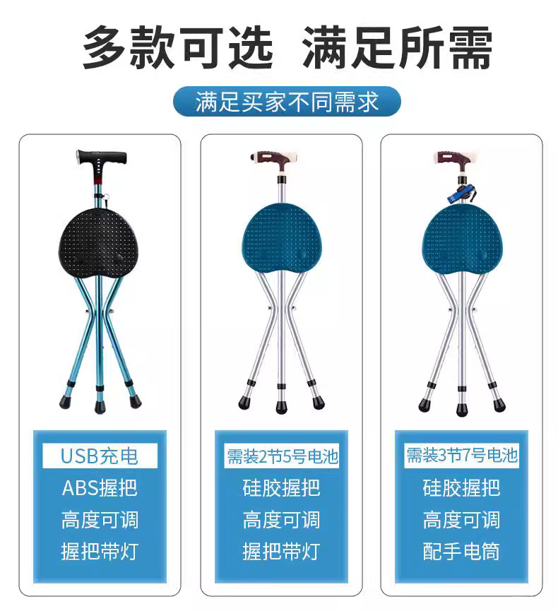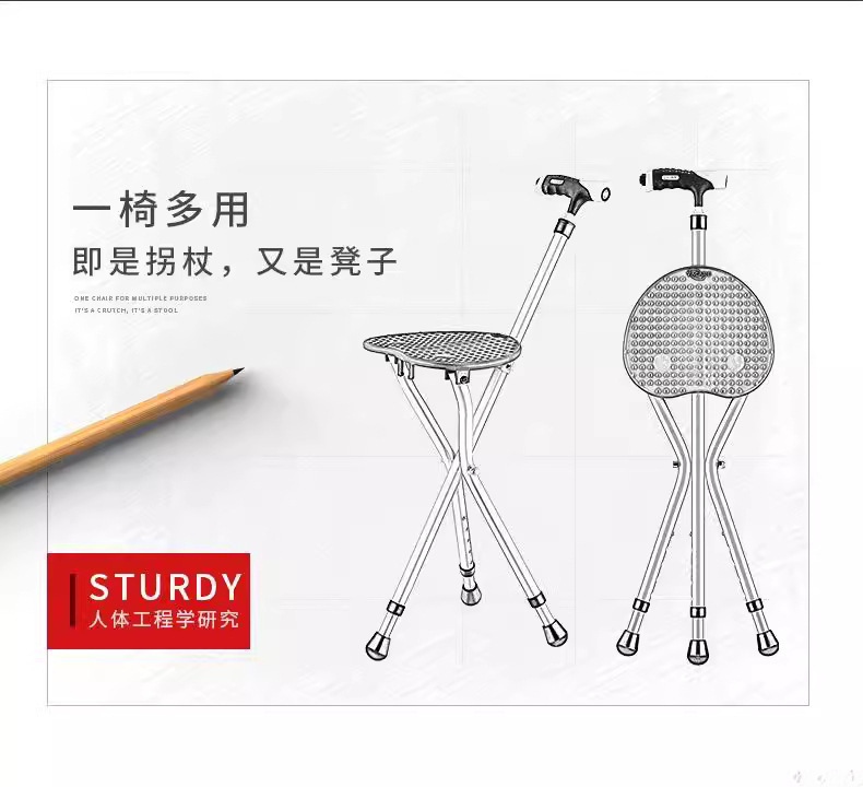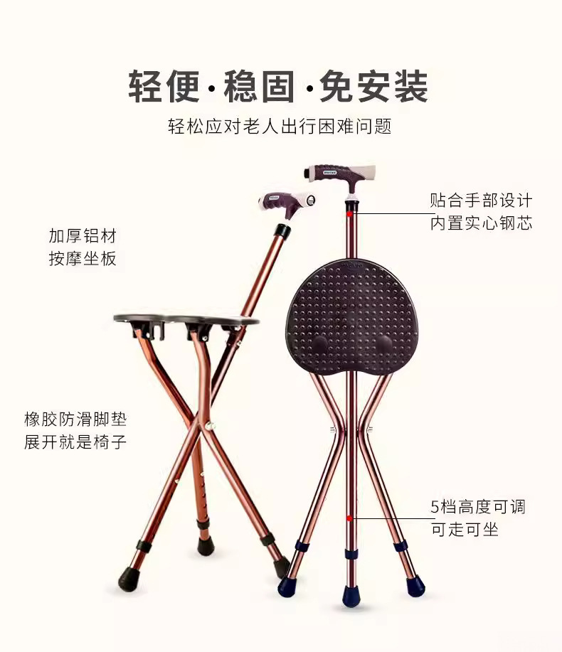 노인용 지팡이 의자, 이중 목적 보행 보조기, 접이식 및 휴대용 지팡이 의자, 노인용 다기능 의자
