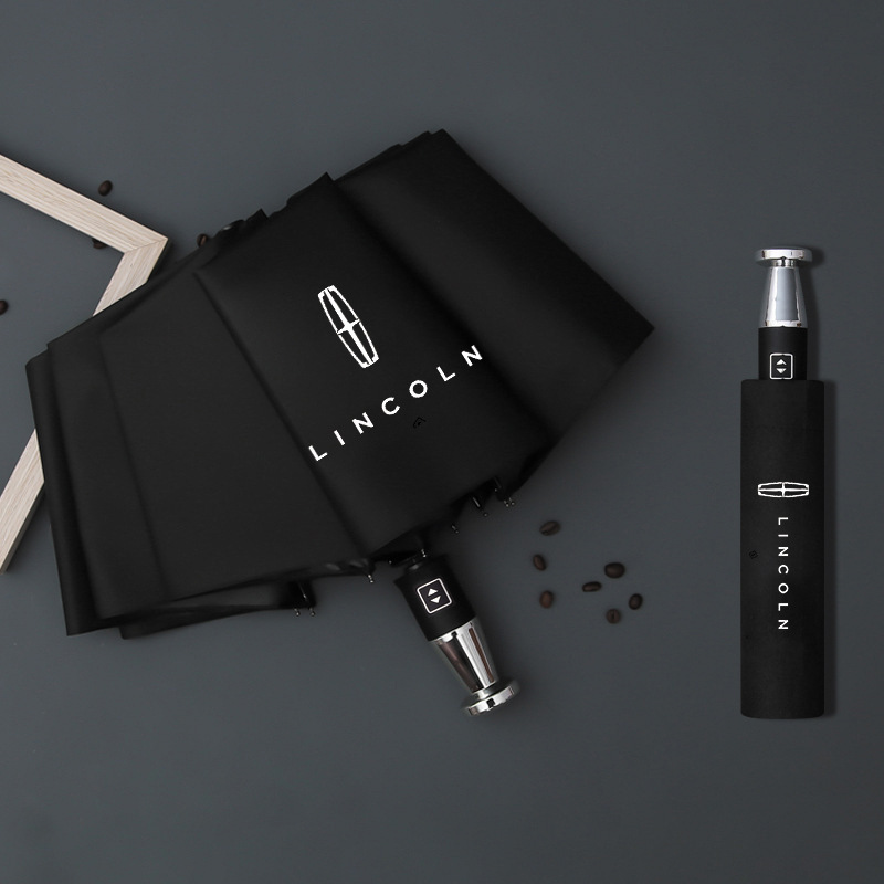 • 링컨 실버 도금 손잡이 접이식 4S 매장 선물 우산 10 리브 자동 비닐 자외선 차단제