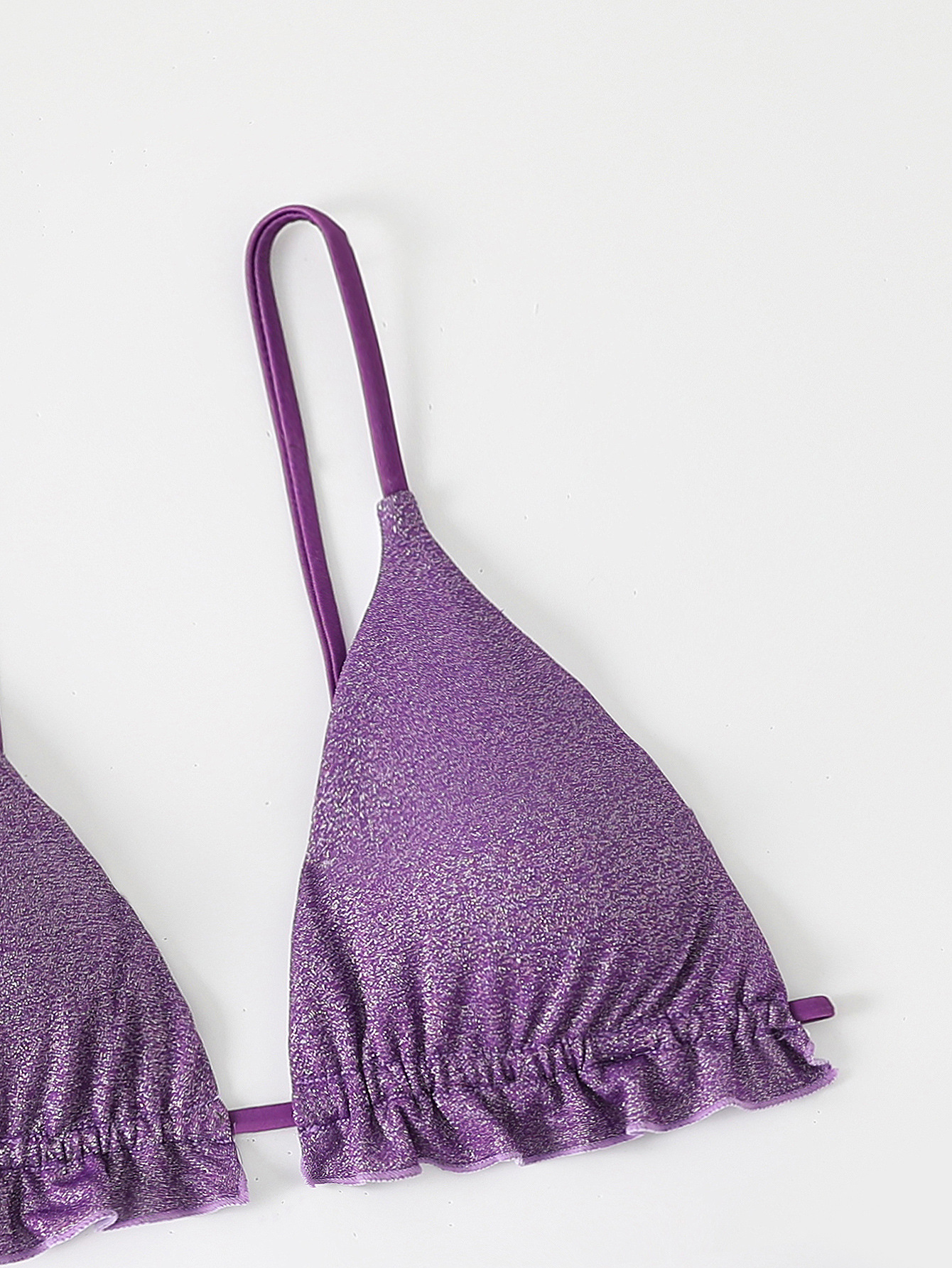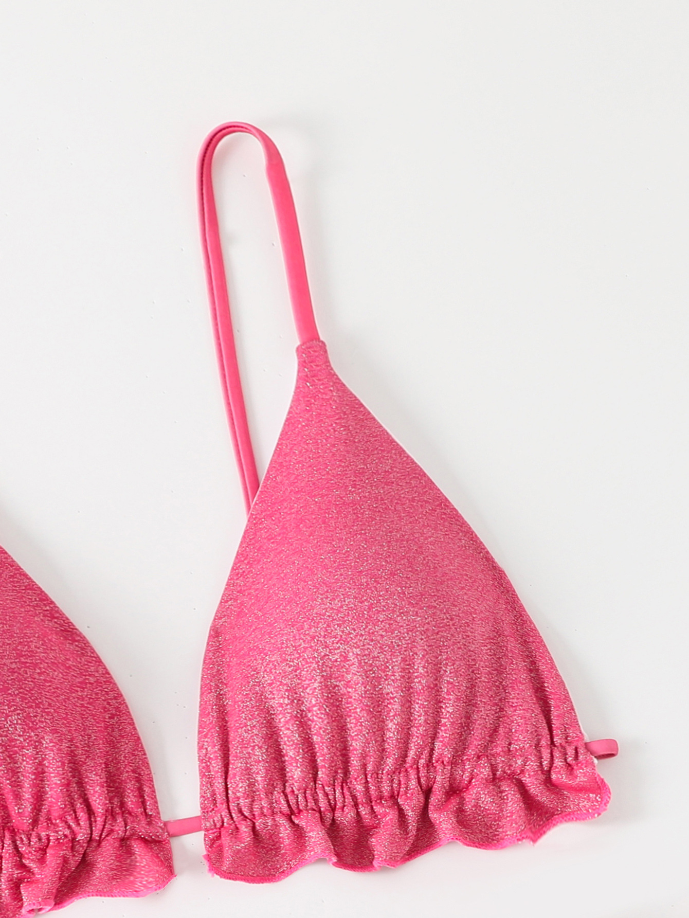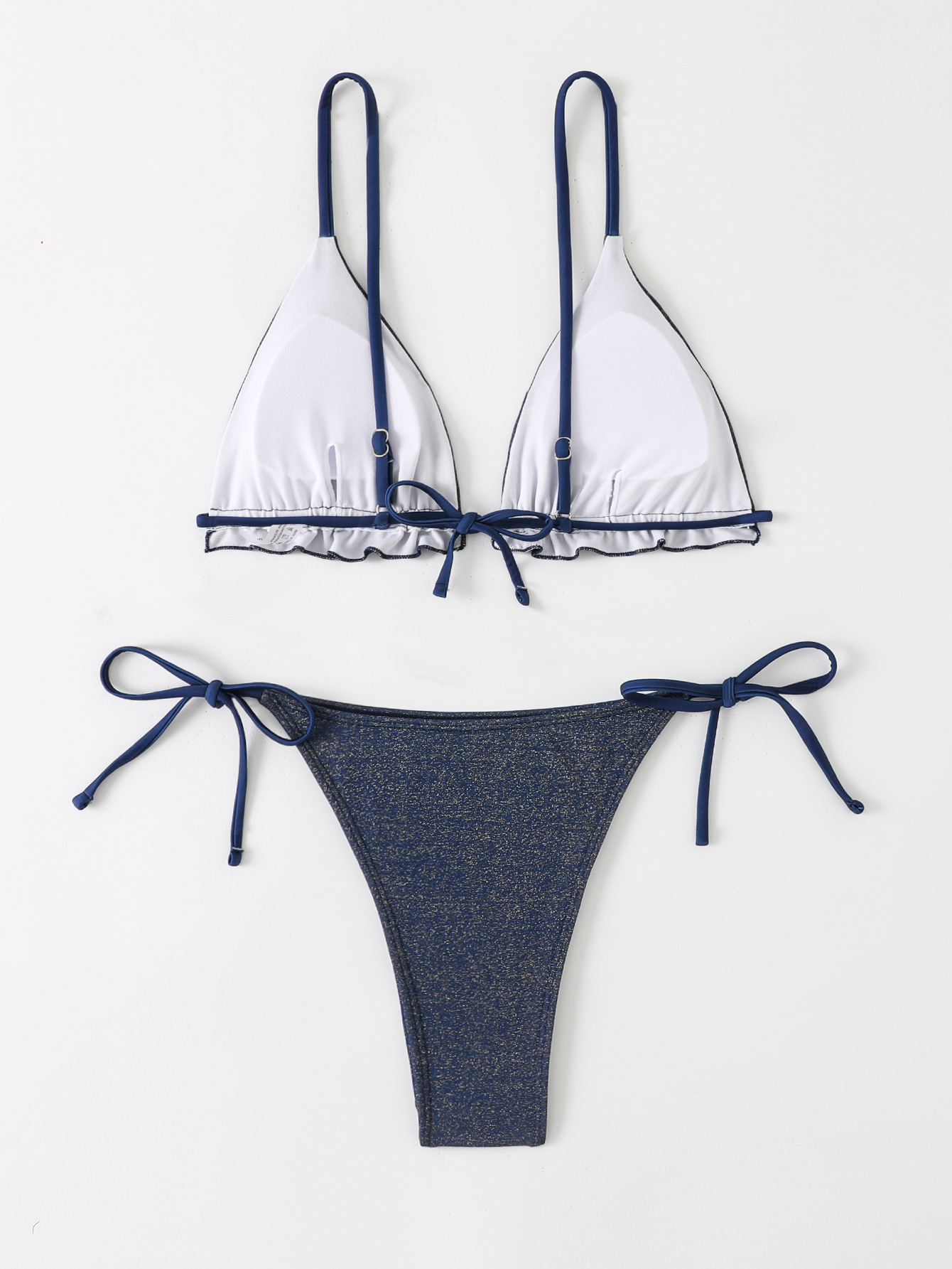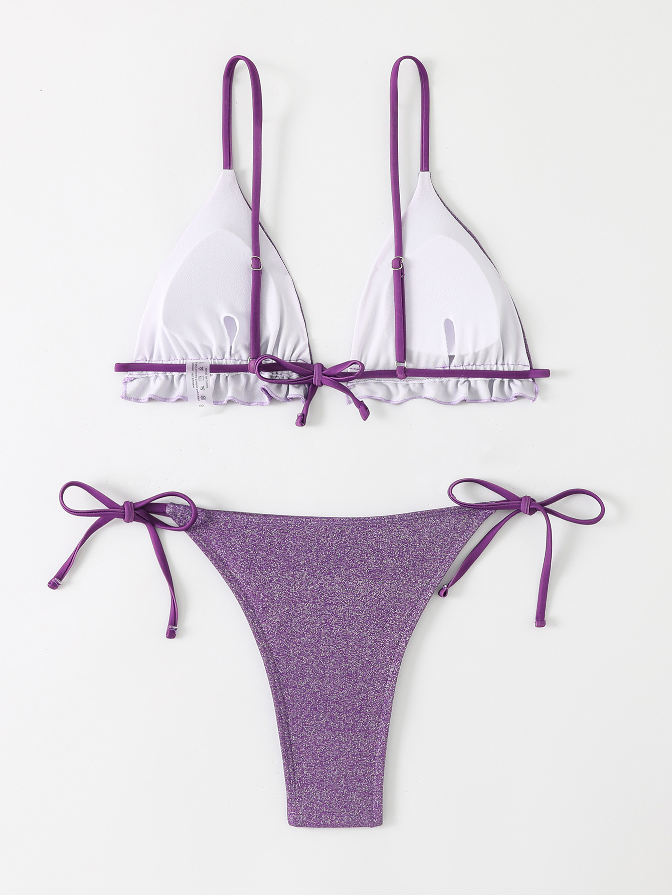 크로스보더 2025 유럽 및 미국 대외 무역 3점 수영복 솔리드 컬러 레이스업 스플릿 수영복 러플 아마존 비키니